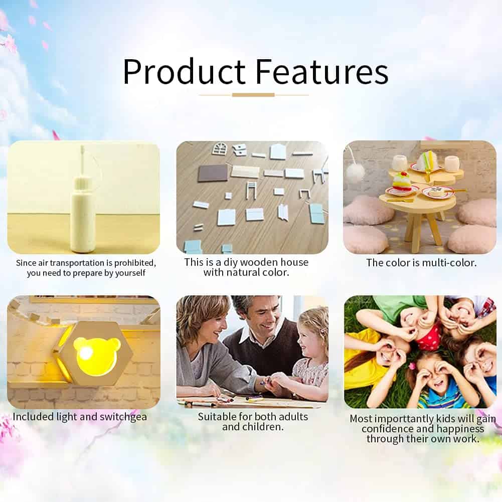 ¡Bienvenido al mundo de AK Casa de Juguete Hecho a Mano lleno de imaginación y diversión! ¡Involúcrate en crear una casa de juguete creativa e imaginativa para ayudarte a calmarte, aliviar la presión laboral y promover el desarrollo cerebral. Mejora las habilidades para resolver problemas, aumenta la eficiencia laboral e incluso sirve de ejemplo para los niños. Completar esta casa de juguete DIY te permitirá disfrutar de la máxima satisfacción psicológica. Su naturaleza compacta, ligera y hermosos colores hacen de esta casa de muñecas en miniatura un imprescindible absoluto. Ideal para sala de estar, estudio, dormitorio, loft. Descripción: Este kit de rompecabezas de madera 3D está hecho de materiales avanzados. Utilizando tecnología de corte láser no tóxica, precisa y limpia, bordes lisos, sin rebabas, seguro de usar. Materiales: tela, madera, papel, etc. El paquete incluye: 1. Kit de Casa DIY incluye todos los muebles y accesorios mostrados en la imagen. 2. Manual de instrucciones visual a color con imágenes ayuda a ensamblar claramente paso a paso. 3. La mayoría de los kits de casas de juguete vienen empaquetados con movimientos musicales y cubiertas contra el polvo. Solo unas pocas casas de muñecas son demasiado pequeñas para tener una cubierta contra el polvo o un movimiento musical. Nota importante: 1. Los adhesivos y las pilas no están incluidos. Esto se debe a que el transporte aéreo está prohibido. 2. Recibí el paquete de material suelto. El kit de la casa requiere DIY, pulido, pegado, ensamblaje y modelado para completar los muebles y accesorios del hogar. 3. Herramientas de mano necesarias: tijeras, cuchillo, pinzas de precisión, destornillador. 4. El Kit de Casa de Muñecas DIY contiene piezas pequeñas que los niños menores de 14 años necesitan la supervisión de un adulto para completar. 5. Si surgen problemas durante el montaje, como daños o piezas faltantes, las reemplazaremos incondicionalmente. Por favor, envíenos un correo electrónico para que tengamos la oportunidad de resolver su problema.