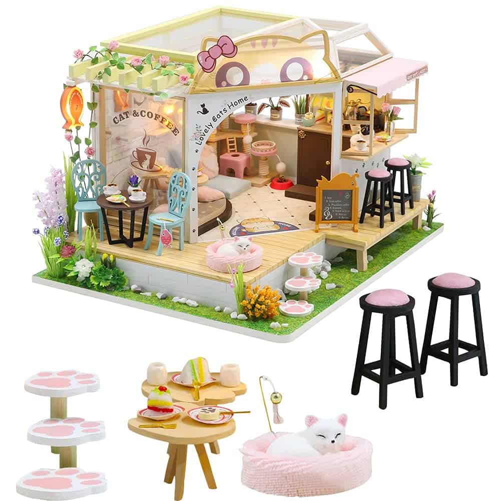Kit de Casa de Muñecas en Miniatura de Madera para Café de