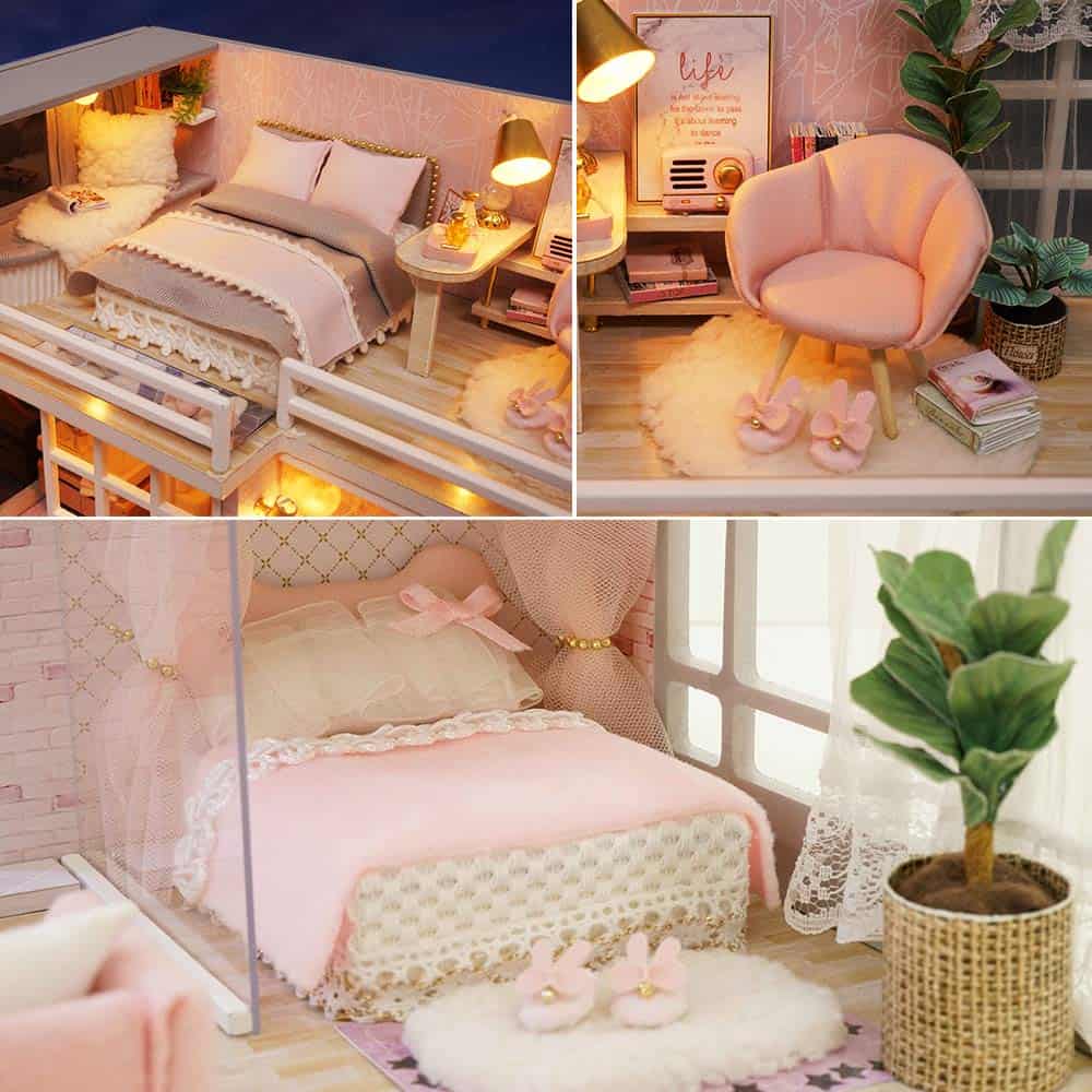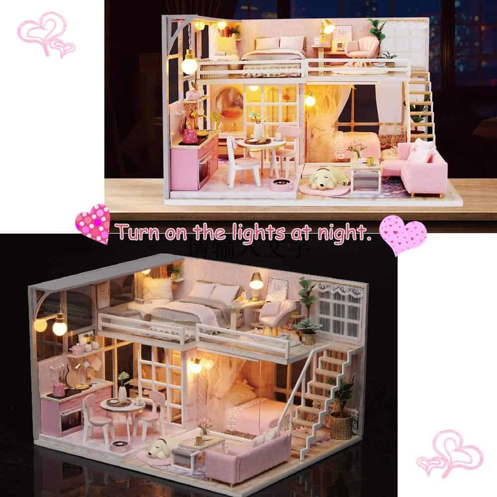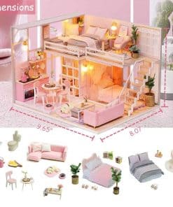 Características Adicionales: El kit de casa de muñecas en miniatura DIY es adecuado para personas mayores de 12 años, y los niños menores de 12 años necesitan la ayuda de adultos para completar. Por lo general, se tarda 1-2 días en ensamblarse. Es una buena oportunidad para desafiarte a ti mismo a completar todo el ensamblaje, la casa terminada te dará la sensación de logro. Lo más importante de todo, disfrutar del proceso. Las herramientas no están incluidas: Antes de armar el juguete, debes preparar las tijeras, pegamento y pilas, así como otras herramientas. Atención: Peligro de asfixia – piezas pequeñas, no apto para niños menores de 3 años para jugar. Adecuado para niños mayores de 12 años para jugar. Herramientas necesarias para el proceso: Tijeras de papel, Destornilladores, Pinzas de precisión, Pegamento. Incluye en el Paquete: 1. Una caja bellamente colorida, son regalos perfectos en varias festividades para adolescentes y adultos. 2. Kit de casa DIY que incluye todos los muebles y accesorios de las imágenes. Un manual de instrucciones visual y colorido con imágenes, que te guía claramente para armar paso a paso.