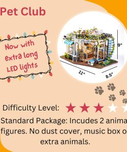 Indulgente en el mundo de las casas en miniatura. Nuestros kits de casas de muñecas en miniatura de madera se han convertido en populares kits de pasatiempo y kits DIY de moda para adultos. Este kit de casa de muñecas DIY incluye todo lo necesario para ensamblar tu casa de muñecas DIY con instrucciones en inglés. Construye tu propia casa de muñecas en miniatura con muebles. No es necesario ser súper creativo para disfrutar de una casa de muñecas para adultos. Con todas las piezas de madera precortadas, suministros adicionales de manualidades e instrucciones fáciles de seguir, podrás construir tus propias casas en miniatura sin necesidad de buscar y comprar otros materiales. Incluso puedes crear tu propio pueblo en miniatura cuando completes más de estos kits de casas de muñecas. Este es un kit de miniatura de nivel intermedio destinado a adolescentes y adultos. Dependiendo de tu nivel de habilidad, tomará aproximadamente 15 horas completarlo. Los niños más pequeños pueden encontrarlo demasiado desafiante de construir. Envía este kit de casa pequeño como regalo de cumpleaños o del Día de la Madre o constrúyelo tú mismo y preséntalo como un regalo único a familiares y amigos en ocasiones especiales. Estamos seguros de la calidad de nuestros productos. Sin embargo, si encuentras piezas faltantes o rotas, no dudes en contactarnos. Las reemplazaremos lo antes posible. Garantizamos devolverte el dinero completo si no estás satisfecho con nuestro producto.