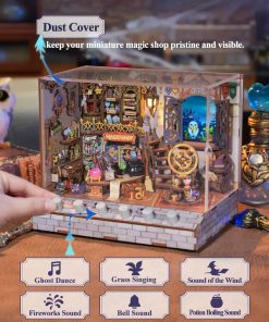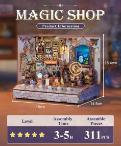 En una noche misteriosa, el búho trae la carta de admisión a la academia de magia a tu ventana. Adéntrate en la tienda de magia bien surtida, donde encontrarás todo tipo de pociones misteriosas, varitas y animales mágicos esperando a ser descubiertos. Este kit de casa de muñecas en miniatura ofrece 6 efectos de sonido de ruido blanco que puedes personalizar a tu gusto, junto con una pantalla electrónica que se transforma con los efectos de sonido. Además, hay luces y otros elementos interactivos para que puedas explorar y disfrutar. Más que una simple decoración, este kit es versátil: puedes encender los efectos de sonido para tenerlo en tu escritorio mientras trabajas, o al lado de tu cama para acompañarte durante la noche. Además, puedes programar el apagado automático de 15 a 105 minutos para mayor comodidad. El montaje es sencillo y lleva entre 2 y 4 horas, con instrucciones detalladas que te guiarán paso a paso. Podrás disfrutar de momentos de calidad construyéndolo con tu familia y también puedes regalarlo en cumpleaños u ocasiones especiales. El paquete incluye una cubierta de acrílico para protegerlo del polvo, pero ten en cuenta que el pegamento líquido no está incluido debido a restricciones de transporte. Deberás conseguir adhesivos artesanales o pegamento avanzado 3 en 1. Si tienes algún problema con tu kit, nuestro servicio al cliente estará encantado de ayudarte y solucionar cualquier inconveniente. ¡Gracias por apoyarnos y disfrutar de tu kit de casa en miniatura de Tonecheer!