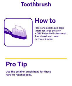 Petsmile es la única pasta dental recomendada por VOHC para tu mascota con Calprox. Los veterinarios eligen Petsmile por los ingredientes de alta calidad que promueven dientes blancos y encías saludables. La VOHC reconoce que Petsmile cumple con los estándares más altos para la salud oral de tu mascota. ¡Usar la pasta dental Petsmile y cepillarse diariamente mejorará significativamente la salud oral de tu mascota! La fórmula patentada de Petsmile Calprox está clínicamente probada para inhibir la acumulación de placa y sarro, mientras blanquea los dientes disolviendo suavemente la película de proteínas. La película de proteínas es la fina biopelícula que se forma en la superficie de los dientes, a la que se adhieren la placa, las bacterias y las manchas. Eliminar la película deja los dientes de tu mascota más limpios y blancos, mejorando la salud de las encías y proporcionando un aliento fresco besable. Para obtener los mejores resultados, simplemente aplica la pasta dental Petsmile en los dientes de tu gato o perro y cepilla una o dos veces al día. El cepillo de dientes de doble punta tiene una cabeza de cepillo pequeña y grande, para acomodar una amplia variedad de tamaños de mascotas. Además, las cerdas suaves están anguladas a 45 grados para ayudar a llegar debajo de la línea de las encías y prevenir la acumulación de sarro y placa. Tu mascota puede comer o beber inmediatamente después de aplicar la pasta dental Petsmile. Los ingredientes incluyen Calprox, agua desionizada, glicerina, ácido cítrico, fosfato dicálcico dihidratado, goma de celulosa, urea peróxido, carbopol 934P, hidróxido de potasio, sabor, benzoato de sodio, ácido fosfórico y cloruro de cetilpiridinio. Al usar solo ingredientes de grado humano, puedes estar seguro de que tu mascota está utilizando la mejor pasta dental para mascotas del mercado. La pasta dental Petsmile es hipoalergénica y está hecha solo con ingredientes de la más alta calidad que promueven dientes y encías saludables.