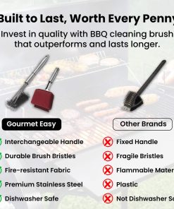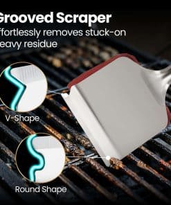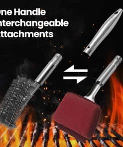 1. Cabezales de Cepillo Intercambiables: Este cepillo de limpieza para parrilla incluye un cepillo de cerdas y un raspador de parrilla con una esponja resistente al fuego, convirtiéndolo en un kit de limpieza de parrilla versátil. El diseño intercambiable extiende su vida útil, convirtiéndolo en una herramienta ecológica y rentable. 2. Mango Ergonómico Antideslizante: Diseñado para la comodidad, el mango proporciona un agarre firme, evitando resbalones mientras se frota. Ya sea que esté enfrentando la suciedad difícil en su limpiador de plancha o manteniendo sus accesorios de barbacoa, este estropajo para parrilla garantiza una limpieza sin esfuerzo. 3. Acero Inoxidable Premium 304: Fabricado en acero inoxidable 304 de grado alimenticio, este raspador de parrilla es resistente a la corrosión, duradero y seguro para lavavajillas. Un imprescindible en sus accesorios de plancha y herramientas de barbacoa para durabilidad e higiene. 4. Caja de Regalo de Lujo: Este kit de limpieza de parrilla de alta gama es perfecto para regalar o uso personal, convirtiéndolo en una elección premium para cualquier colección de accesorios de barbacoa. 5. Garantía de 5 Años: Nuestro cepillo de limpieza para parrilla y herramientas de barbacoa están diseñados para durar y vienen con una garantía de 5 años que cubre problemas de calidad del producto. El cepillo de cerdas y la esponja son piezas consumibles y no están cubiertos por el desgaste normal.