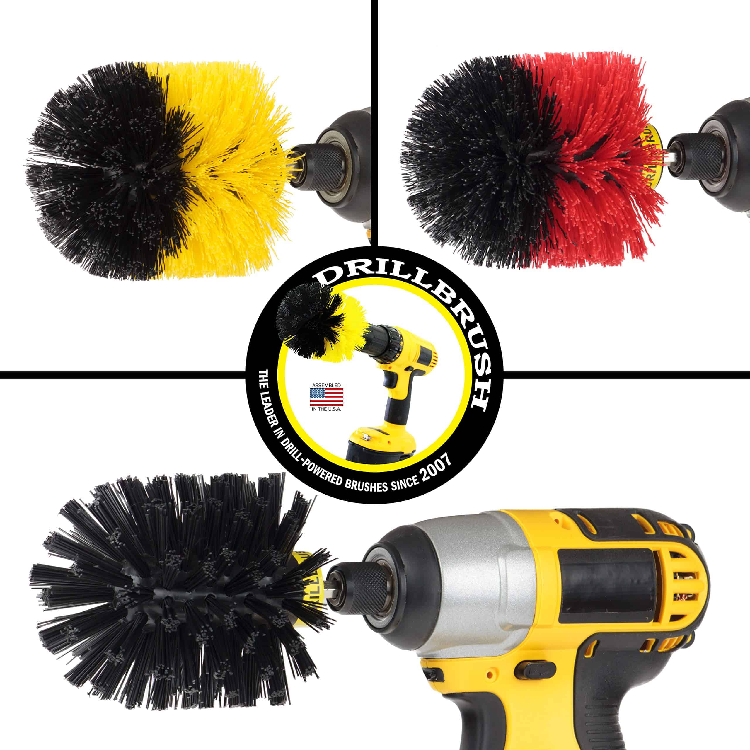 Kit de cepillos de limpieza a motor de 3 piezas. Incluido uno de cerdas medianas amarillas, ideal para limpiar azulejos, lechada, duchas y aplicaciones de limpieza en general. El cepillo rojo rígido es adecuado para la limpieza de ladrillos, concreto y patios de piedra, aceras y entradas. El cepillo negro ultra rígido es ideal para limpiar parrillas, hornos y alimentos quemados, así como para eliminar pintura suelta u otros usos industriales. Todos los productos de Drillbrush tienen una ventana de devolución de 90 días sin preguntas. Si no está completamente satisfecho con nuestro producto, emitiremos un reembolso o enviaremos un reemplazo a solicitud del comprador. ¡El Taladro inalámbrico NO está incluido!