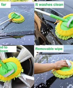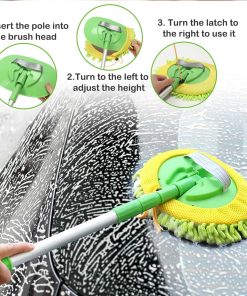 El cepillo para lavado de coches es suave, sin pelusa, sin rayas, con espuma abundante y la microfibra de chenilla engrosada asegura una superficie limpia perfecta que cuida la pintura sin dejar marca. La felpa es densa y limpia incluso los recovecos. El diseño telescópico de tres secciones permite ajustar la longitud del palo de la mopa y también puede girarse 180 . Te ayuda a limpiar áreas de tu vehículo a diferentes alturas y ángulos. También es ligero y no desgastará tus manos después de un largo tiempo de fregar. La mopa para lavado de coches es desmontable, está diseñada con un arnés de cordón, así que cuando se ensucie, puedes desatar el arnés y reemplazar fácilmente con otra cabeza de chenilla reemplazable sin arañazos para seguir utilizándola. Retira la cabeza de reemplazo de chenilla y úsala como manopla, esponja o trapo para lavar coches de manera super sencilla. Amplia gama de aplicaciones: el kit de lavado de coches es una buena opción para limpiar coches y hogares. Se puede usar en húmedo o seco para coches, camiones, furgonetas, motocicletas, espejos, muebles y vidrio, etc., haciendo que la limpieza sea más fácil y rápida.