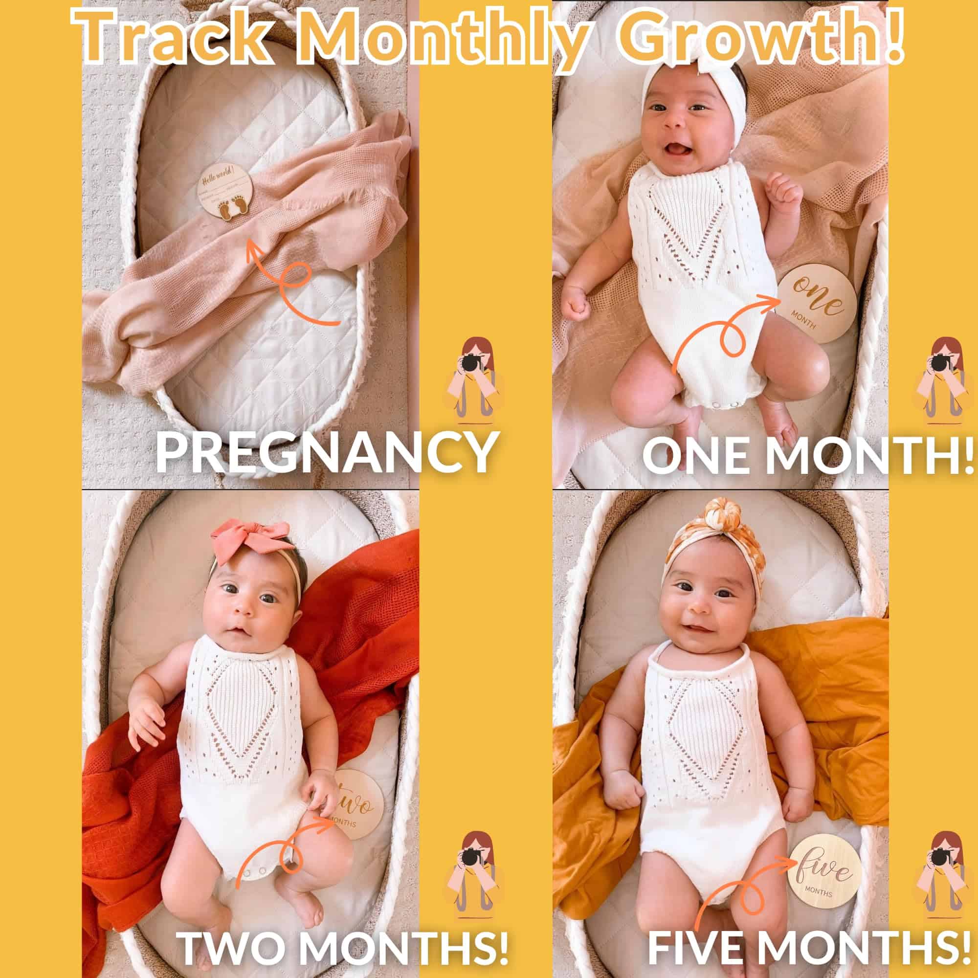 Mantén los momentos felices para siempre: ¡sé creativo y publica fotos en tus redes sociales de tu creciente pancita o tu bebé al lado de una de estas tarjetas de hitos mensuales de madera! ¡Estas tarjetas de utilería fotográfica son perfectas para anuncios de embarazo o anunciando la llegada del bebé! Es el regalo de cesta cambiadora de bebé perfecto para un baby shower. ¡Incluye 7 tarjetas de hasta 12 meses!.