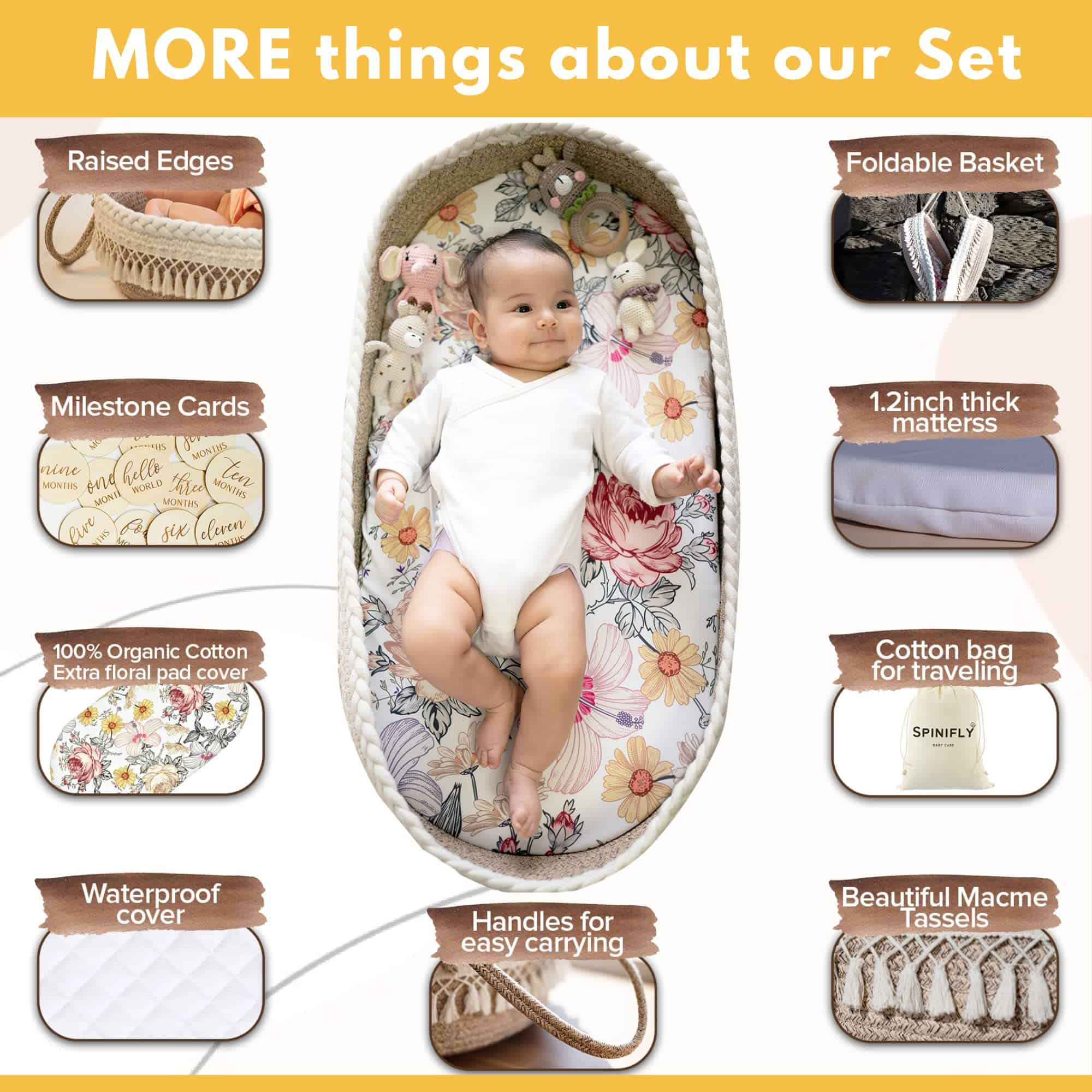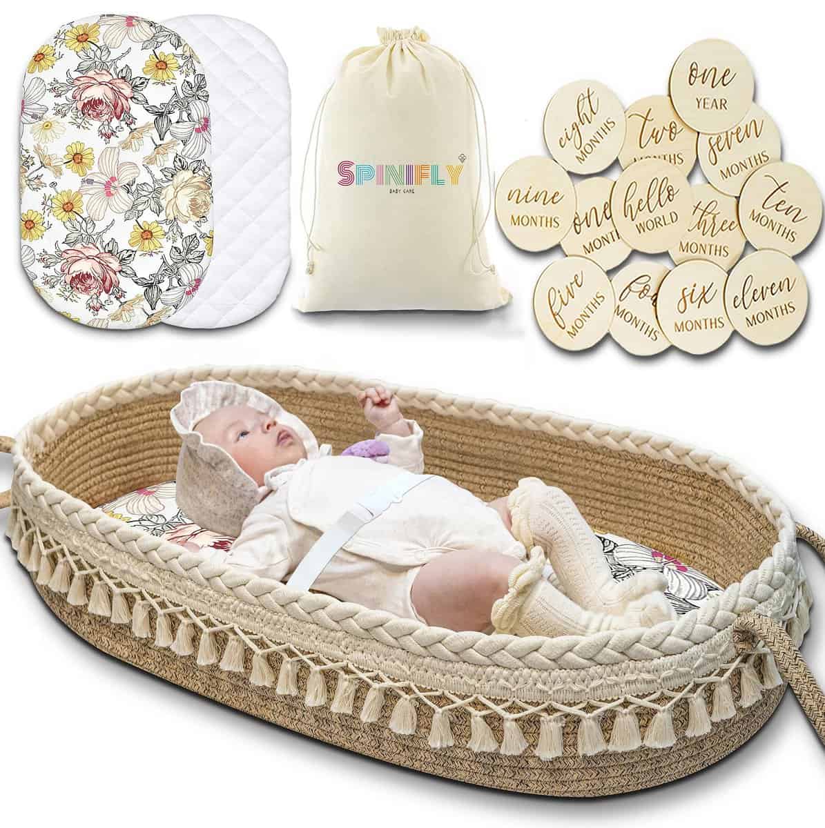 SPINIFLY está aquí para tu familia: creamos una segura cesta cambiadora para bebés para un uso diario fácil. Nuestra meta es ayudarte con el cuidado de tu bebé tanto como podamos. Hicimos nuestra cuna para asegurar exactamente eso. Bordes más altos para soporte, cesta de algodón orgánico al 100% para la piel sensible del bebé, una almohadilla extra gruesa para mantener a tus bebés calientes y la funda removible del cambiador de bebé es lavable a máquina para un cuidado sin esfuerzo, además de ser impermeable para esos pequeños accidentes. (Solo cubierta de rayas blancas).