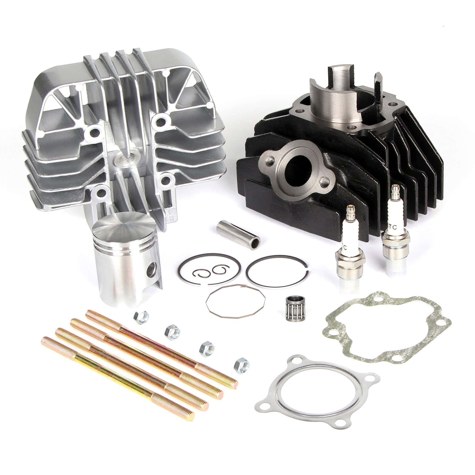 1 x Cilindro (47mm) 1 x Cabeza de Cilindro 1 x Empaquetadura Superior de Cilindro 1 x Kit de Pistón (47mm) 2 x Bujías 4 x Tornillos de Cilindro