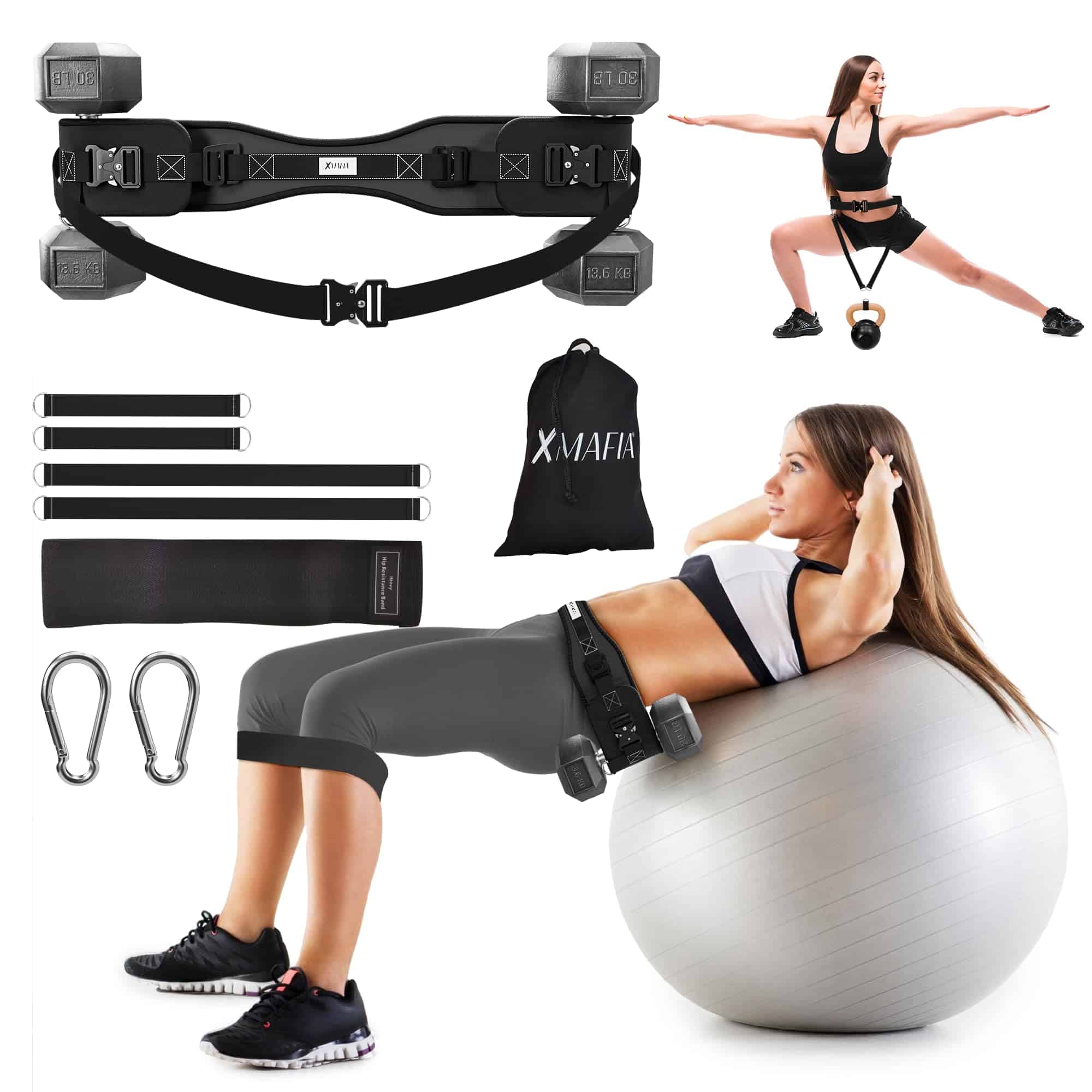 1. Ultimate Versatility for Workouts Anywhere: El cinturón de empuje de cadera XMAFIA es un cambio de juego para los entusiastas del fitness. Úsalo como un cinturón de empuje de cadera con mancuernas, cinturón de sentadillas o cinturón para dominadas con peso para realizar empujes de cadera, puentes de glúteos, sentadillas, zancadas, fondos y más. Compatible con mancuernas, pesas rusas y placas, es el equipo perfecto para esculpir y fortalecer tus glúteos en cualquier lugar: gimnasio, casa o exterior.