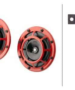 Hella 003399801 Supertone es un kit de claxon gemelo de tono alto/tono bajo de 12V con rejilla protectora roja. Este kit incluye 2 claxones con una garantía limitada de un año. El cuerpo de metal negro recubierto con una rejilla protectora roja le confiere un aspecto distintivo y elegante. La carcasa, membrana y soporte son de color negro, mientras que la rejilla protectora es de color rojo, con metal galvanizado para mayor durabilidad.