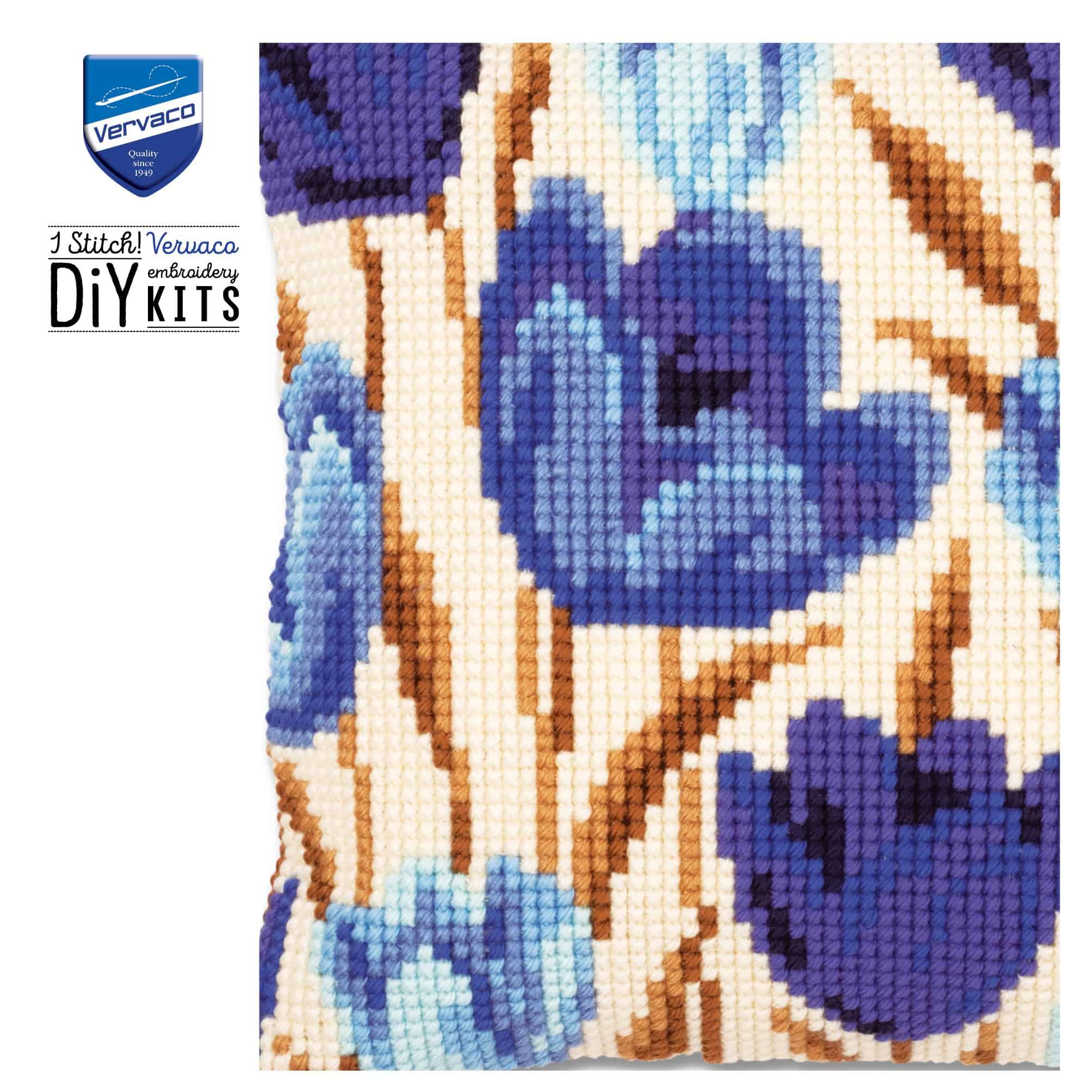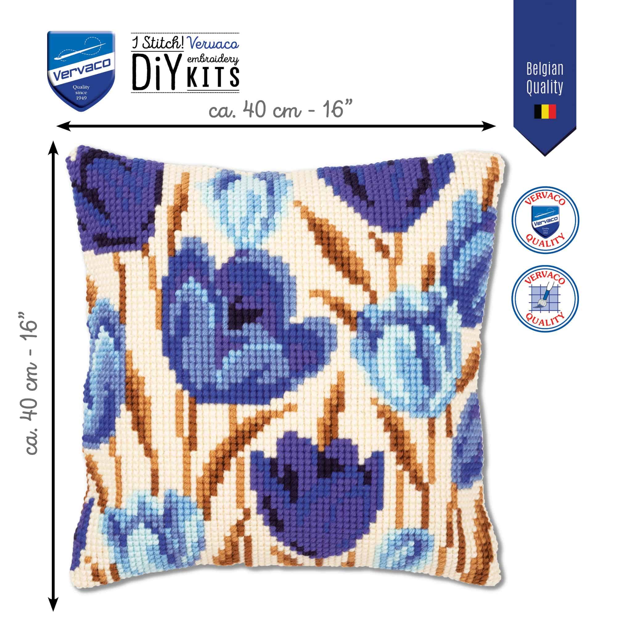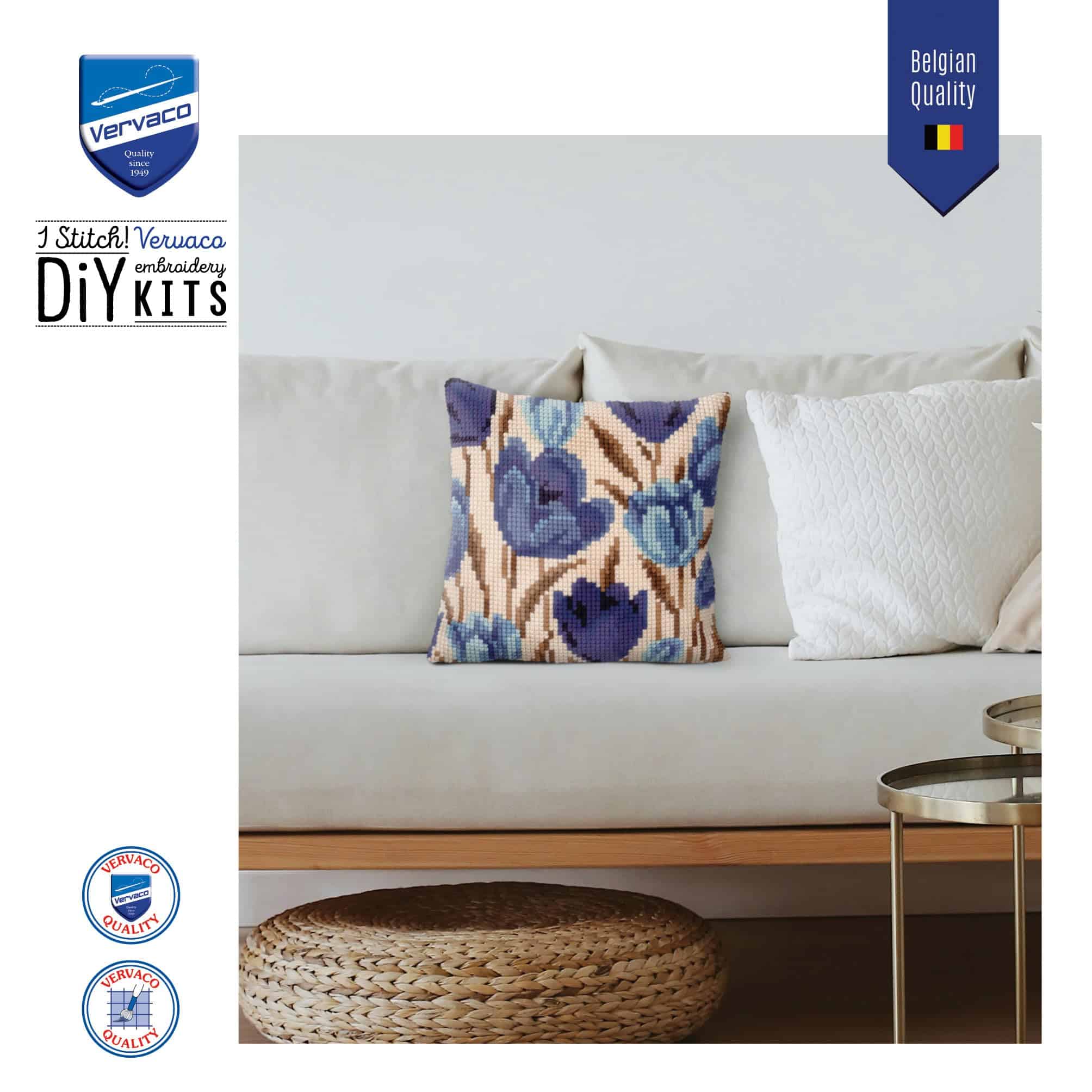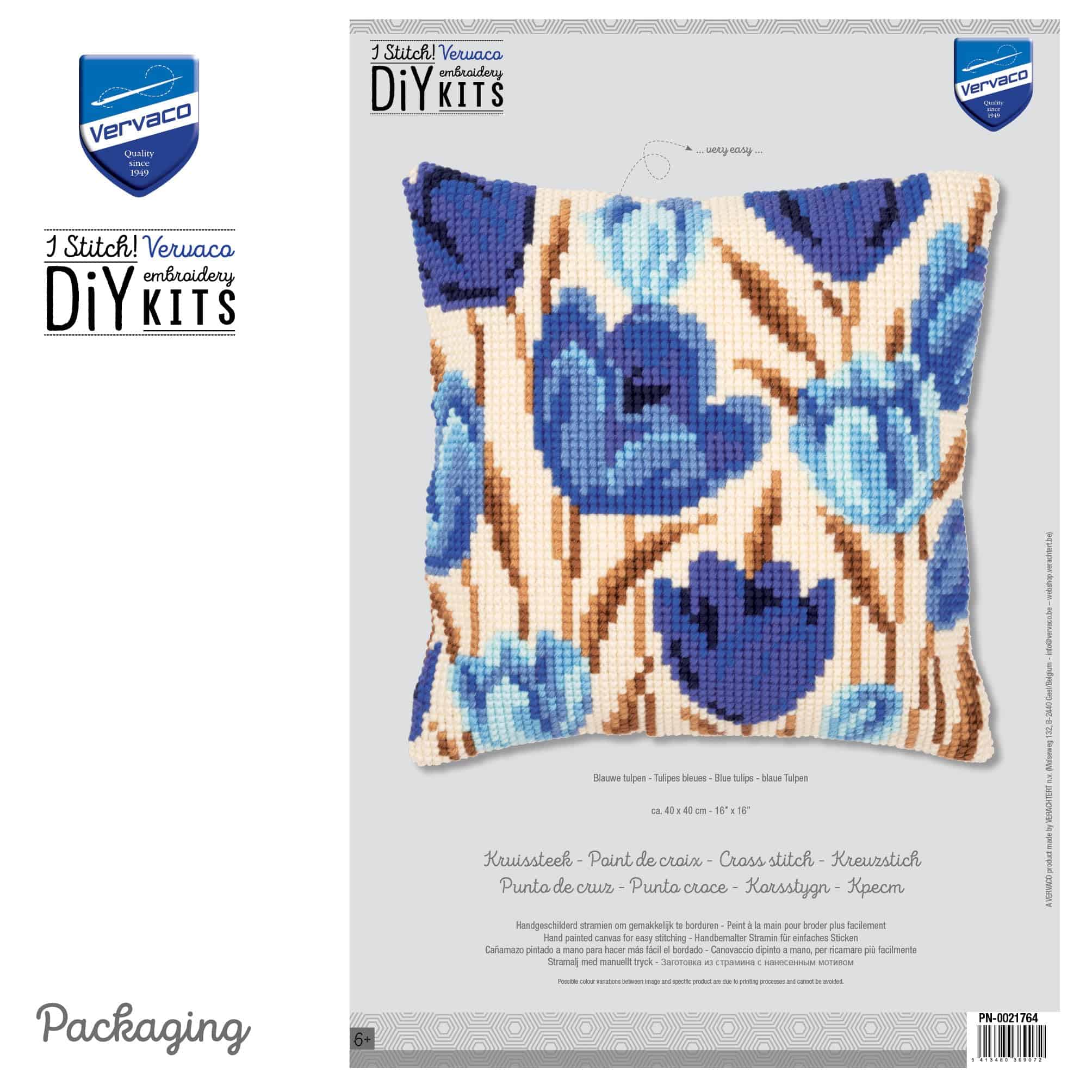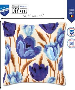 Kit de cojín de punto de cruz Vervaco Tulipanes Azules 16″