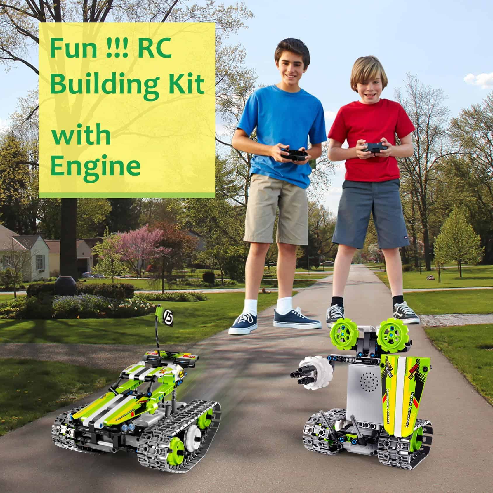 3. Incluye Set de Potencia de Funciones: Con batería recargable de 400mAh 7.2V integrada (nueva actualización). Mucho más seguro para que los niños recarguen. Cumple con los requisitos ASTM F963-16 / ASTM F963-17. Disfruta de hasta 25 minutos de juego con una carga completa usando el control remoto 2.4G, mucho más potente que otros kits de construcción RC.