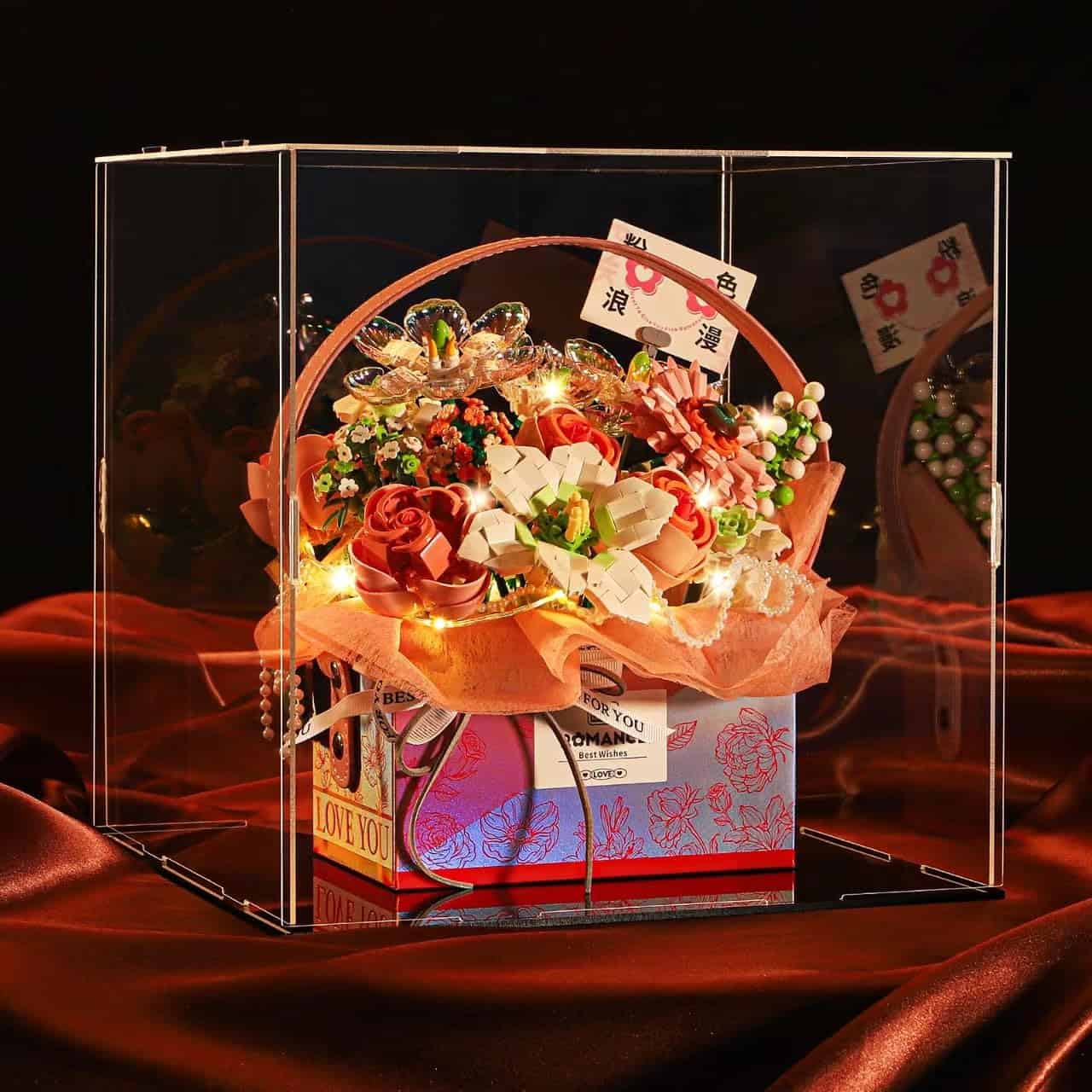 3. Materiales de Alta Calidad: Utilizamos materiales de bloques de construcción de alta calidad para garantizar la seguridad, la no toxicidad y el no irritante de nuestros productos, permitiendo que los niños se sientan tranquilos mientras juegan. Al mismo tiempo, la cubierta de acrílico transparente está hecha de material de alta transparencia, que no solo protege eficazmente los bloques de construcción y las rosas, sino que también hace que el efecto general sea más hermoso y de alta gama.