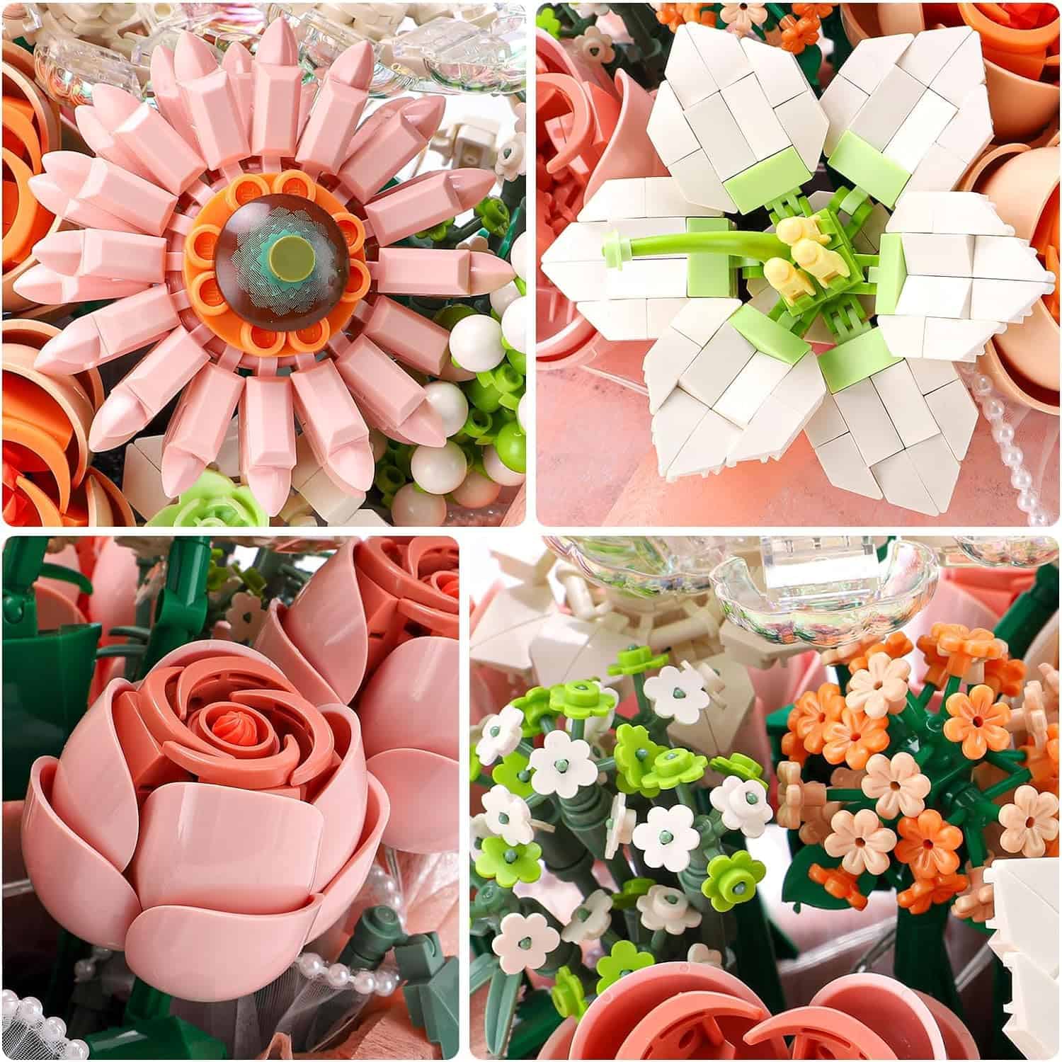 2. Diseño Creativo Único: Las rosas de bloques de construcción combinan perfectamente rosas tradicionales con la diversión de los bloques de construcción con su diseño único y exquisita artesanía. Cada pétalo y hoja está cuidadosamente diseñado, mostrando la infinita creatividad de los bloques de construcción al mismo tiempo que preserva la elegancia y romance de las rosas.