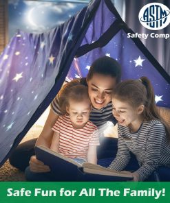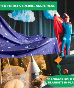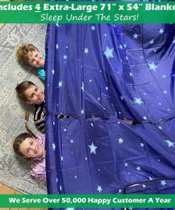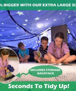 ¡El Molcey Fort-Pack definitivamente se ajusta a la categoría de ‘Juguetes Divertidos!’. ¡Creemos que es el kit de construcción de fortalezas definitivo para niños de 8-12+, edades 4-8, 10-12 e incluso adultos! ¡Contiene todo lo necesario para crear la magia de las fortalezas: 3x Mantas de Fortaleza Grandes 71 x 54 pulgadas con Diseño de Cielo Estrellado con Velcro 4x Pesos de Anclaje con Bolsa de Frijoles para sostener las mantas de la fortaleza en su lugar 6x Correas de Velcro Adicionales 1x Solapa Secreta que se abre 1x Mochila Tote para la Fortaleza. Ya sea que estés buscando un kit de construcción de niños como regalos para juguetes para niños y niñas de 5 6 7 8 +, o juguetes para interiores o exteriores para niños de edades 4-8, ¡entonces no busques más! ¡Nos encantaba hacer fortalezas en interiores cuando éramos niños, así que decidimos construir un kit de fortaleza para niños para el siglo XXI! La mejor constructora de fortalezas para niños en exteriores o en interiores – Si estás buscando regalos de Navidad o cumpleaños para niños de 6 años, agrega los Kits de Construcción de Fortalezas Molcey para Niños Grandes a tu lista de compras y ¡haz algunas increíbles fortalezas con almohadas!