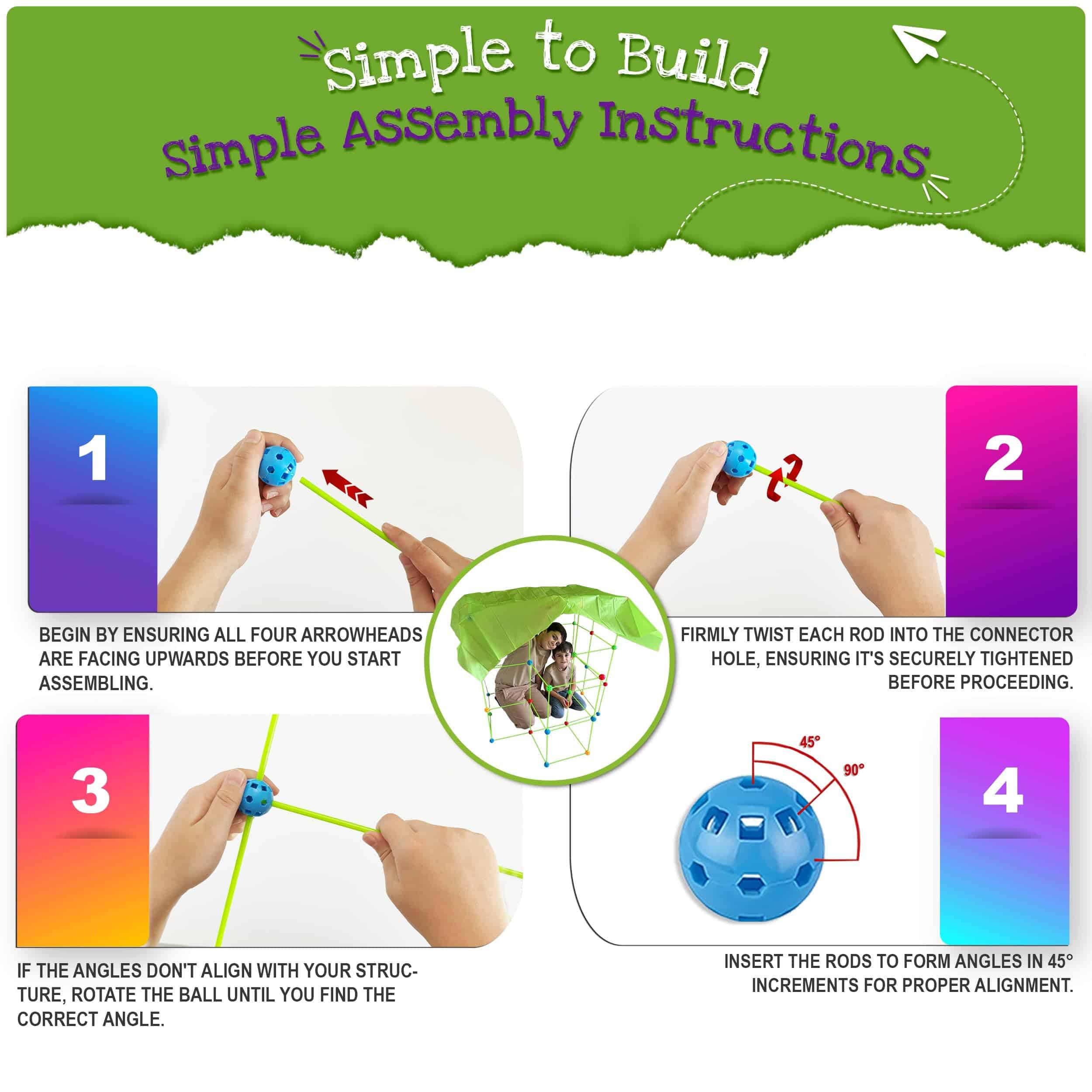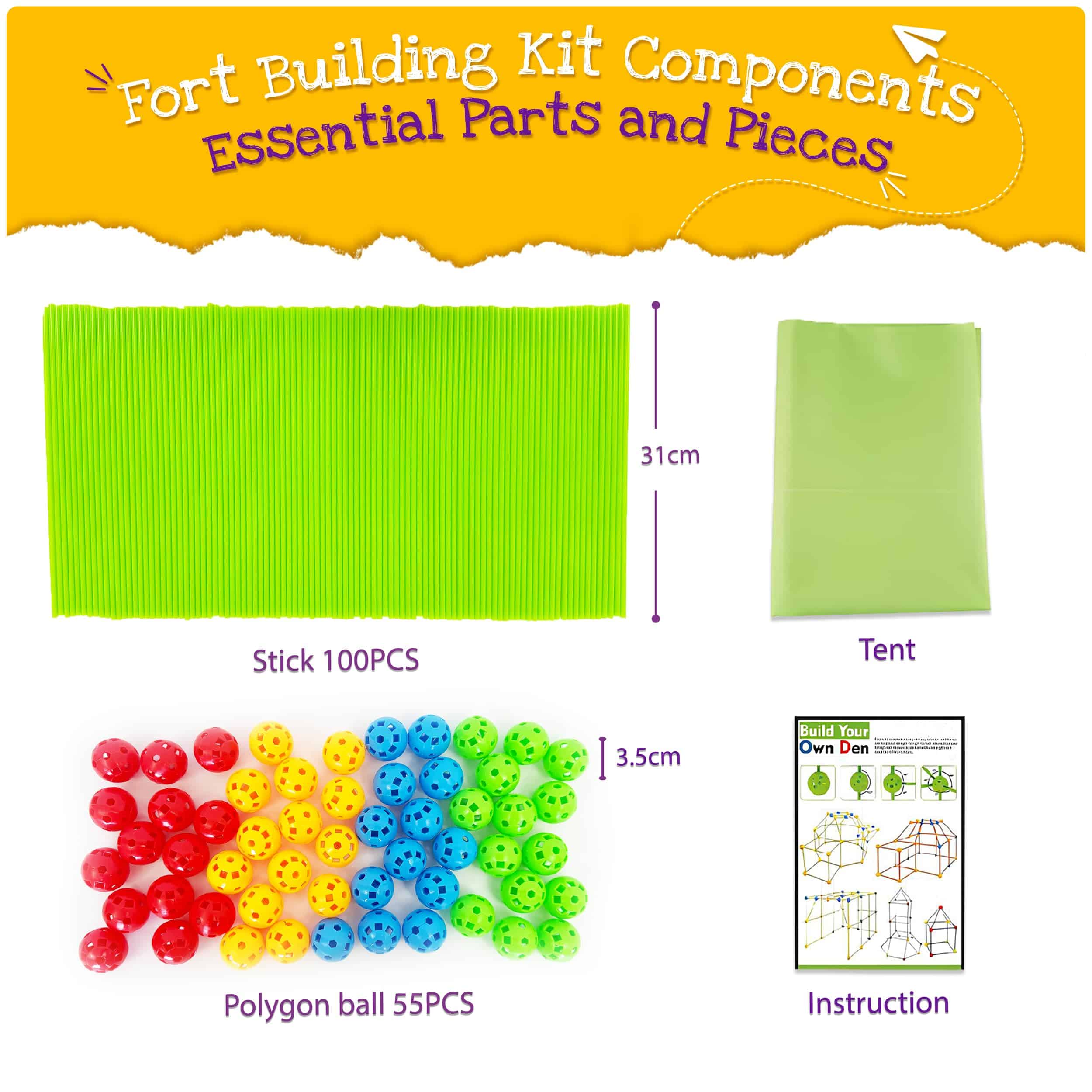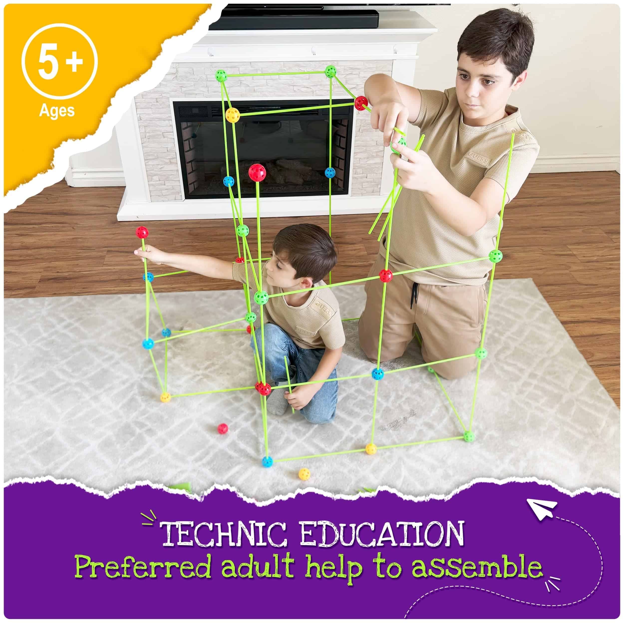 1. Educación STEM: Mejora las habilidades de Ciencia, Tecnología, Ingeniería y Matemáticas de tu hijo con este kit de construcción de fortalezas de 155 piezas para niños de 4-8 años. Juguetes de construcción de fortalezas ideales para exteriores para niños y mayores combinando diversión y aprendizaje en un solo paquete atractivo.