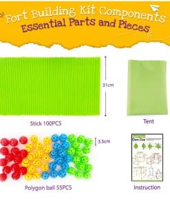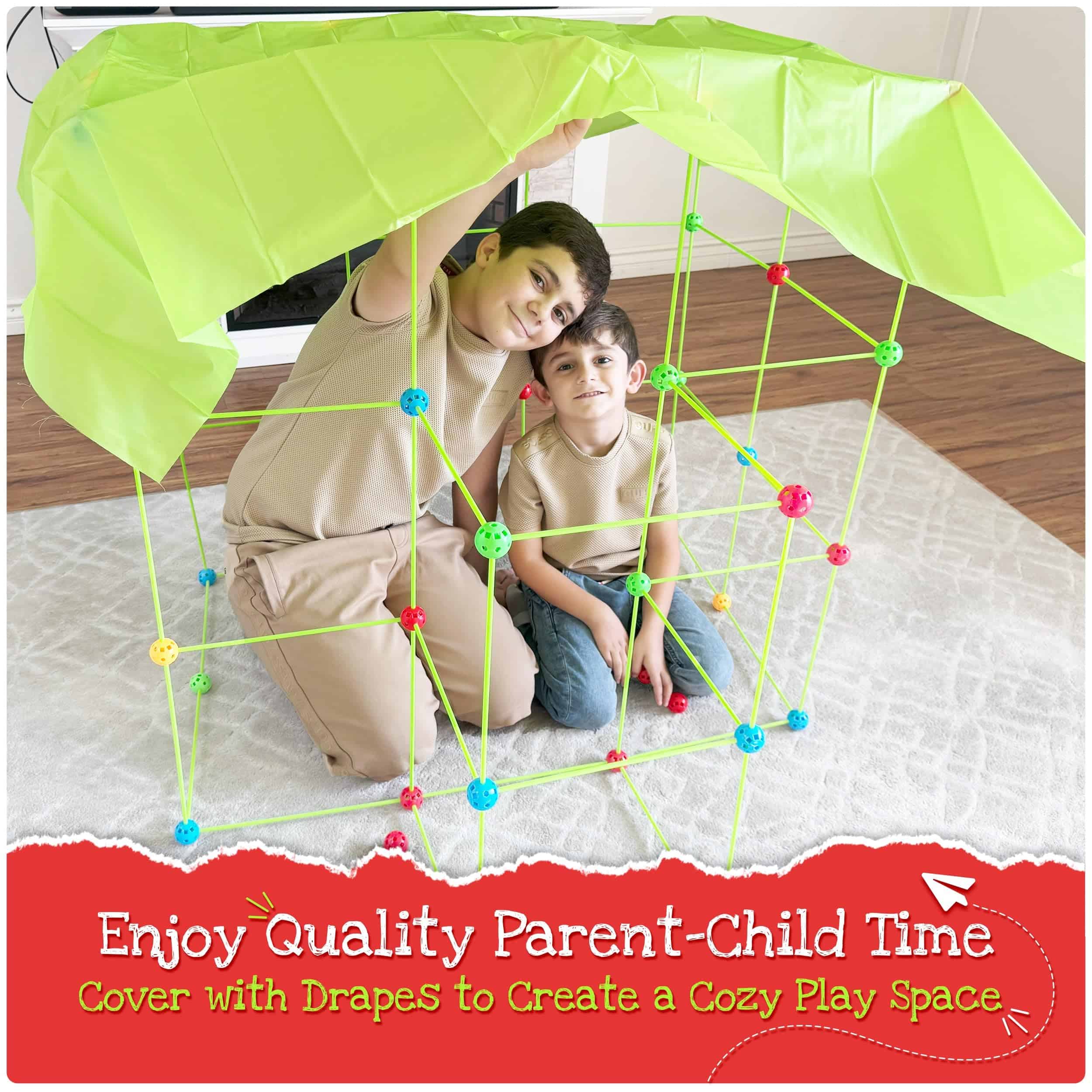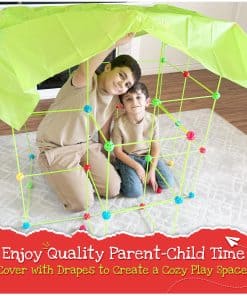 4. Trabajo en Equipo y Habilidades Sociales: Nuestros kits DIY están diseñados para fomentar el juego cooperativo, ayudando a los niños a desarrollar habilidades de comunicación y trabajo en equipo mientras colaboran para construir un kit de fortaleza para niños de 8-12 años usando la imaginación y el trabajo en equipo.