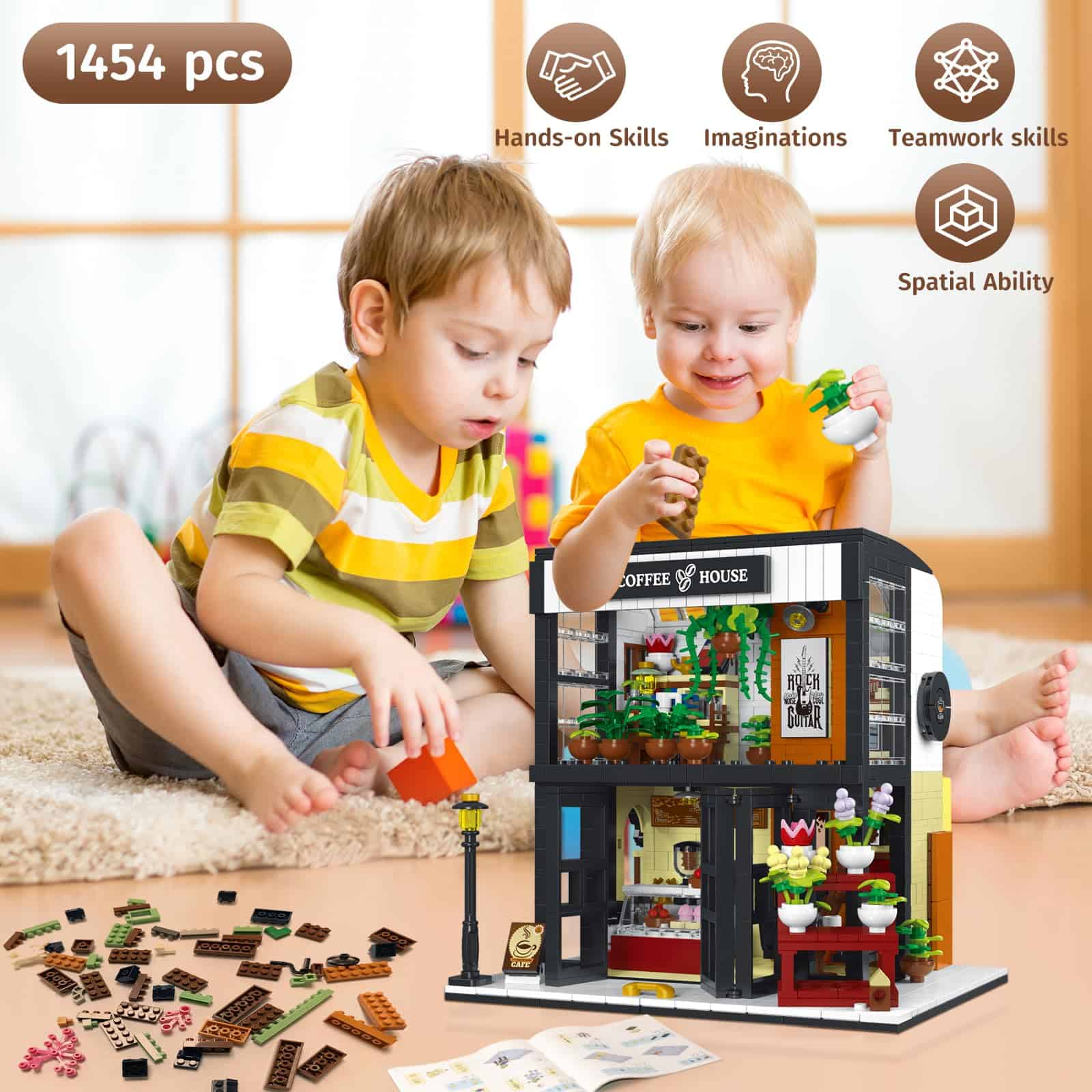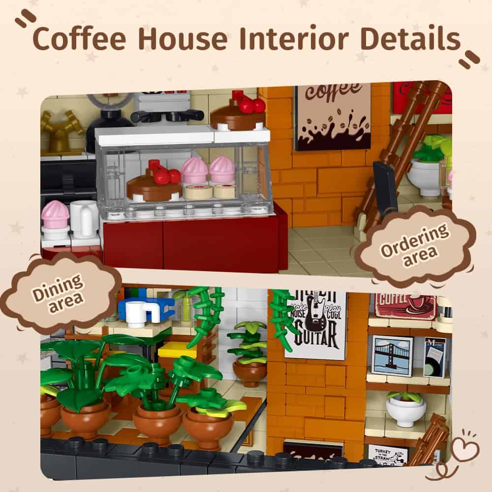 1. Kit de construcción de la arquitectura del Café de la Ciudad con luces LED: este modelo de edificio de café de la ciudad es delicado y encantador, está compuesto por 1454 mini bloques de construcción, lo que brinda más desafíos y diversión a las personas; este juguete es adecuado para adultos, niños y niñas mayores de 14 años, viene con una luz LED para que puedas encender las luces por la noche para una fascinante exhibición nocturna. 2. Tamaño del modelo de arquitectura del Café de la Ciudad: nuestro juguete de construcción de casa de café mide aproximadamente 8.18 x 6.3 x 8.27 pulgadas (L x W x H) cuando está ensamblado, que es compacto y ahorra espacio, puedes exhibirlo donde quieras, como alféizar de la ventana, vitrina, estantería, etc., y el diseño de iluminación creativo y único puede darle al café entero una atmósfera extremadamente cálida. 3. Material de calidad: elaborado con material ABS de calidad, el kit de construcción de café para adultos es duradero y resistente, no tóxico y sin olor, tiene buena flexibilidad, cada pieza de ladrillo se puede ensamblar de forma segura, no es fácil caerse ni deformarse, y el modelo tiene superficies lisas y esquinas redondeadas, suaves al tacto, que se pueden aplicar durante mucho tiempo; consejos útiles: si encuentra artículos faltantes, comuníquese con el vendedor y muestre las partes faltantes y se las enviaremos. 4. Educativo y entretenido: el juego de bloques de construcción de la cafetería es un desafío para principiantes y entusiastas de los bloques de construcción, puedes jugar con hermanos o amigos, lo que te brindará más tiempo de juego divertido; además, jugar con este juguete también está lleno de significado educativo; construirlo puede mejorar la cognición, habilidades prácticas, imaginación, ejercitar la paciencia y la concentración, etc.; es muy práctico. 5. Amplio rango de aplicaciones: los juegos de construcción de la arquitectura del café de la ciudad son adecuados como regalos para miembros de la familia, vecinos, compañeros de clase, compañeros de trabajo y otras personas a tu alrededor, y se pueden aplicar en muchas ocasiones importantes, como cumpleaños, graduaciones, carnavales, Navidad, Acción de Gracias, Año Nuevo, Pascua, Halloween, etc.; lo más importante es que también son adecuados como decoración del hogar para agregar color a tu espacio