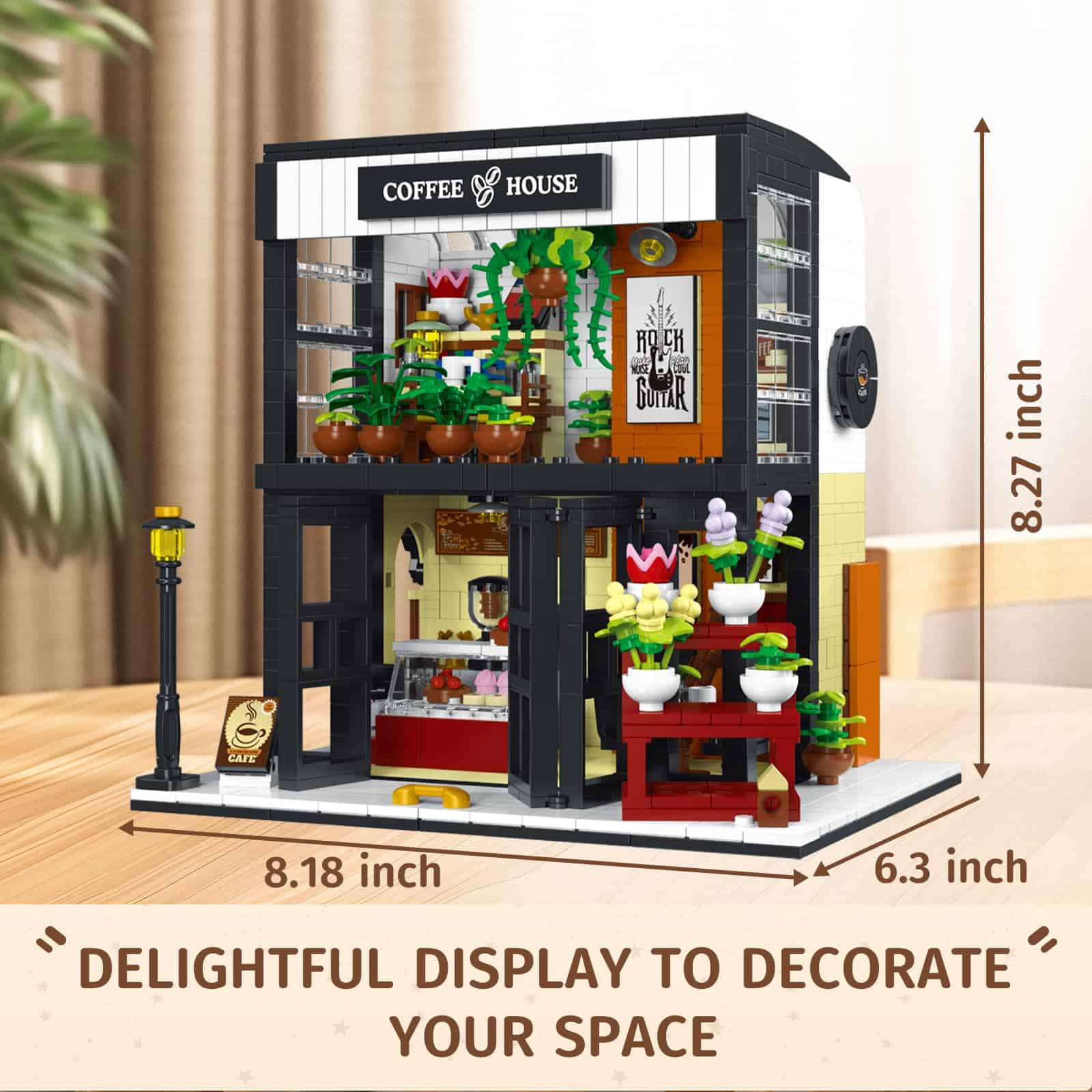 Kit de construcción de la arquitectura del Café de la Ciudad JO con luz LED, 1454 piezas del juego de bloques de construcción del Café de la Ciudad, Juego de bloques de construcción del modelo de visualización del Café de la Ciudad para adultos. Este modelo de edificio de café de la ciudad es delicado y encantador, está compuesto por 1454 mini bloques de construcción, lo que brinda más desafíos y diversión a las personas. Este juguete es adecuado para adultos, niños y niñas mayores de 14 años, viene con una luz LED para que puedas encender las luces por la noche para una fascinante exhibición nocturna. Nuestro juguete de construcción de casa de café mide aproximadamente 8.18 x 6.3 x 8.27 pulgadas (L x W x H) cuando está ensamblado, que es compacto y ahorra espacio, puedes exhibirlo donde quieras, como alféizar de la ventana, vitrina, estantería, etc., y el diseño de iluminación creativo y único puede darle al café entero una atmósfera extremadamente cálida. Elaborado con material ABS de calidad, el kit de construcción de café para adultos es duradero y resistente, no tóxico y sin olor, tiene buena flexibilidad, cada pieza de ladrillo se puede ensamblar de forma segura, no es fácil caerse ni deformarse, y el modelo tiene superficies lisas y esquinas redondeadas, suaves al tacto, que se pueden aplicar durante mucho tiempo. Consejos útiles: si encuentra artículos faltantes, comuníquese con el vendedor y muestre las partes faltantes y se las enviaremos. El juego de bloques de construcción de la cafetería es un desafío para principiantes y entusiastas de los bloques de construcción, puedes jugar con hermanos o amigos, lo que te brindará más tiempo de juego divertido. Además, jugar con este juguete también está lleno de significado educativo; construirlo puede mejorar la cognición, habilidades prácticas, imaginación, ejercitar la paciencia y la concentración, etc.; es muy práctico. Los juegos de construcción de la arquitectura del café de la ciudad son adecuados como regalos para miembros de la familia, vecinos, compañeros de clase, compañeros de trabajo y otras personas a tu alrededor, y se pueden aplicar en muchas ocasiones importantes, como cumpleaños, graduaciones, carnavales, Navidad, Acción de Gracias, Año Nuevo, Pascua, Halloween, etc.; lo más importante es que también son adecuados como decoración del hogar para agregar color a tu espacio