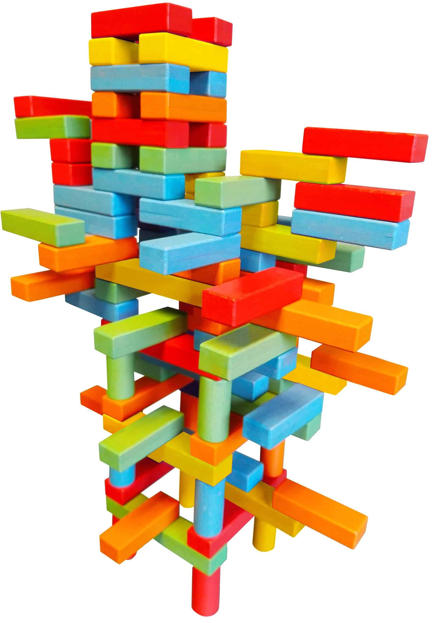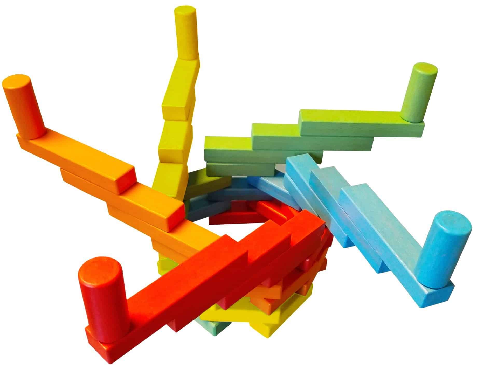 2. Los bloques de madera vienen en 5 colores. Los imanes son fuertes y lo que construyas será estable.