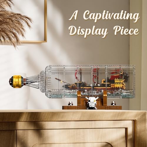 1. El kit de barco en una botella se ensambla a partir de más de 2488 piezas de bloques de construcción y cuenta con instrucciones de papel coloridas que te ayudarán a ensamblarlo fácilmente. Este modelo de barco pirata luce impresionante en su presentación, simulando un verdadero barco pirata. Tamaño total de más de 21.41 pulgadas de largo, 7.67 pulgadas de alto y 7.40 pulgadas de ancho.