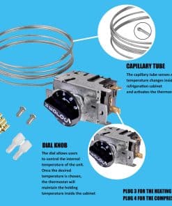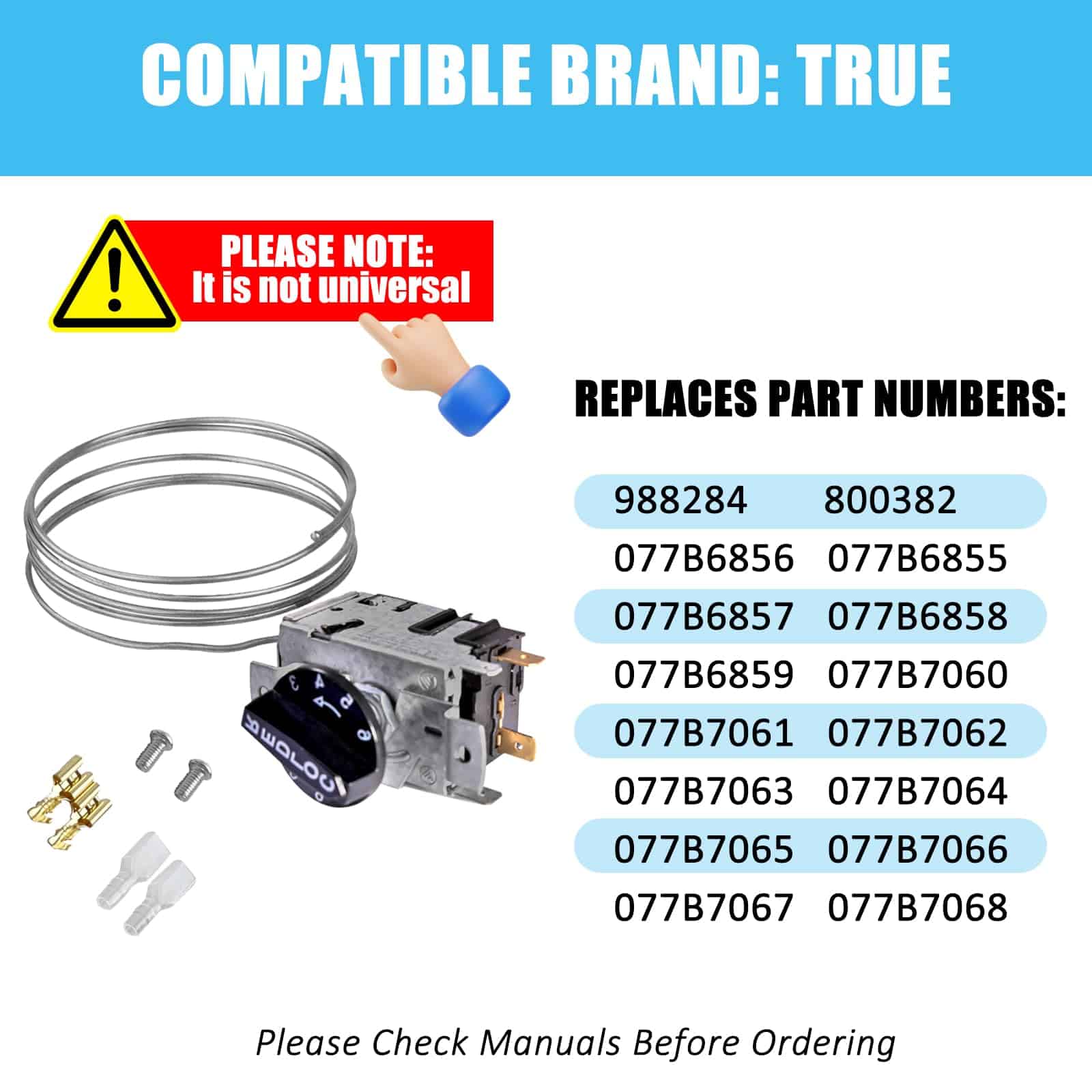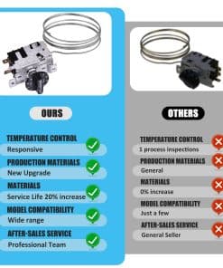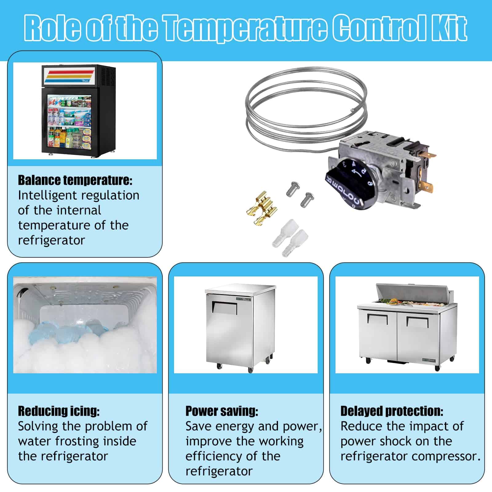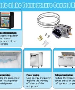 Modelos compatibles: TBB-1 TBB-3G TBB-4G TBB-GAL-3G TCM-78AC TDD-1 TDD-3G TDD-4G TGU-3D TGW-3D TMC-34 TMC-49 TMC-58 TRCB-36 TRCB-110 TRCB-36 TRCB-48 TRCB-96 GDM-05 TPP-44 TPP-60 TPP-67 TSSU-48 TSSU-60 TUC-27 TUC-36 TUC-36 TUC-44 TUC-47D TUC-48 TWT-27 TWT-36 TWT-44 TWT-48. Por favor, ten en cuenta: Si tu número de modelo no está disponible, por favor no lo compres. Guía de Instalación 1. desconecta la energía al refrigerador 2. quita la cubierta del panel de control del refrigerador 3. desenchufa el termostato existente en el refrigerador y retíralo de la pared 4. coloca el nuevo termostato en su lugar, asegurándote de que esté enchufado de forma segura 5. vuelve a colocar la cubierta del panel de control y enciende la energía del refrigerador 6. establece tu temperatura deseada en el nuevo termostato y espera 24 horas para que alcance esa temperatura. Por qué elegirnos Control de calidad estricto: La calidad es la vida de una empresa, y nuestros productos son inspeccionados por el departamento de control de calidad en 3 procesos antes de salir de la fábrica. El estricto control de calidad es solo para brindarte una mejor experiencia. Función notable: En comparación con productos similares, tiene un papel más significativo en la mejora del hielo del refrigerador, la temperatura fuera de control, el consumo de energía. Es más capaz de ralentizar el impacto del suministro eléctrico en el compresor y mejorar el servic