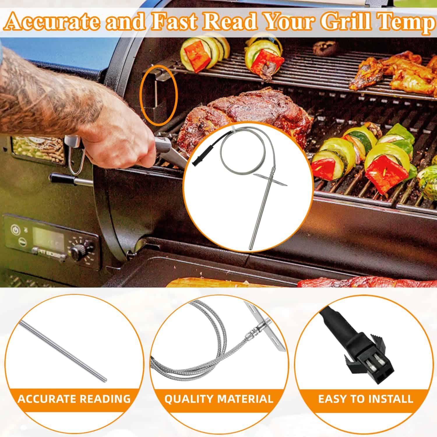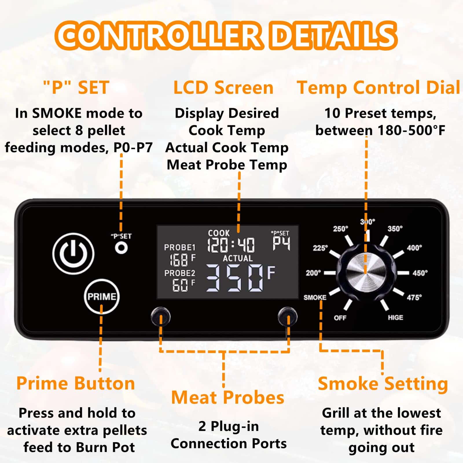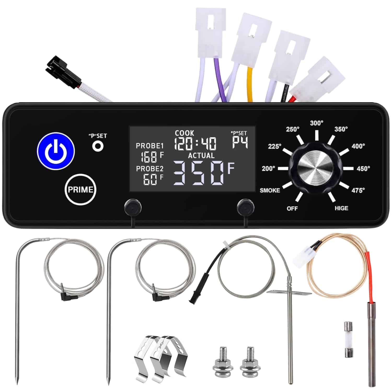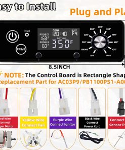 Kit de repuesto de controlador digital que incluye una pantalla LCD para varios modelos de parrillas de pellets de madera Pit Boss. Este kit de controlador AC03P9, PB1100PS1-A003 es una mejora de calidad que garantiza un funcionamiento óptimo de su parrilla. La sonda de carne y la sonda del Sensor RTD proporcionan mediciones precisas de temperatura, lo que le permite cocinar sus alimentos de manera segura y deliciosa. El encendedor Hot Rod con una cubierta de acero inoxidable calienta rápidamente para encender los pellets de manera eficiente. El controlador incluye 10 ajustes de temperatura y 8 modos de alimentación de pellets para una experiencia de cocción versátil. Disfrute de un control preciso de la temperatura y una mayor protección contra cortocircuitos con este kit de reemplazo de controlador digital de Pit Boss.