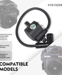 Kit de Conversión de Bobina de Encendido DSAI – Reemplaza 24 755 172-S, 24 755 173-S, 24 584 90-S, 24 584 89-S, 24 584 64-S – Compatible con Kohler CV740/750, CH740/750, SV730, SV735, SV740 – Verificado por VOLTIZER. Reemplaza múltiples números de pieza OEM directamente los números de pieza de Kohler: 24755172-S, 24755173-S, 2458490-S, 2458489-S, 2458464-S, y más. Coincide con las especificaciones OEM de voltaje, tiempo y ajuste. Compatible con motores Kohler V-Twin, se adapta a los motores CV740, CV750, CH740, CH750, SV730, SV735, SV740 de Kohler que utilizan el sistema de encendido DSAI. Diseñado para cortadoras de césped, generadores y equipos de jardinería. Verificado por VOLTIZER – Cada unidad se prueba en motores reales de Kohler para garantizar el montaje correcto, el ajuste del conector, la estabilidad del tiempo de chispa y un rendimiento fiable bajo carga. Plug-and-Play – Ahorre tiempo de reparación, totalmente intercambiable con componentes OEM. No se requiere cableado ni reemplazo de MDI, solo conecte y restaure el rendimiento del encendido en minutos.