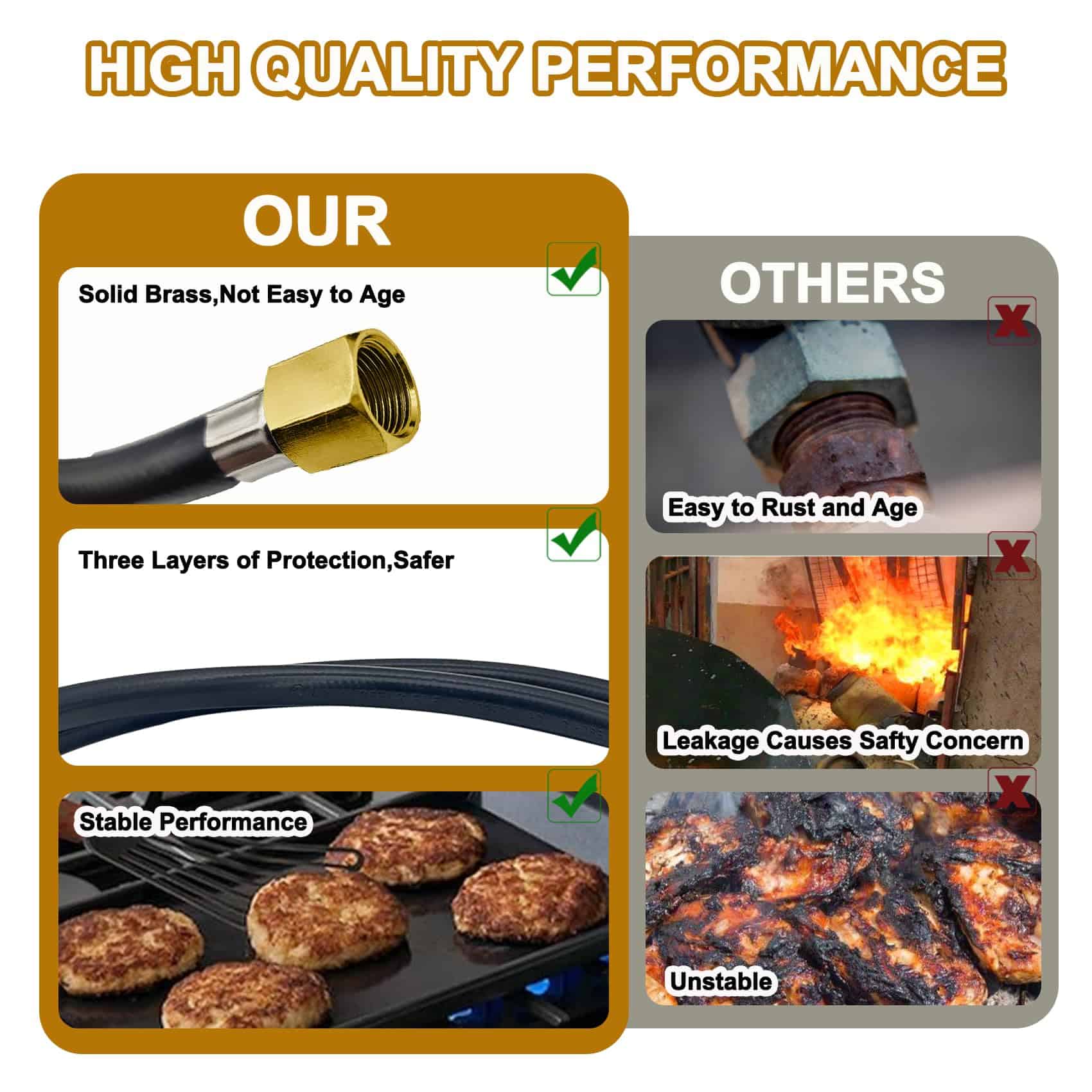 3. Materiales y seguridad: El kit de conversión de parrilla de gas natural 23080901 viene con boquillas de latón al 100% y regulador de aluminio para propano, manguera de goma de 5 pies. El conector de tanque de agua QCC-1 y la hembra de 3/8″ son adecuados para una conexión segura de una variedad de equipos. Aprovechando la última tecnología, el kit está diseñado para cumplir con altos estándares de seguridad, estanqueidad excepcional, resistencia al envejecimiento y una vida útil prolongada.