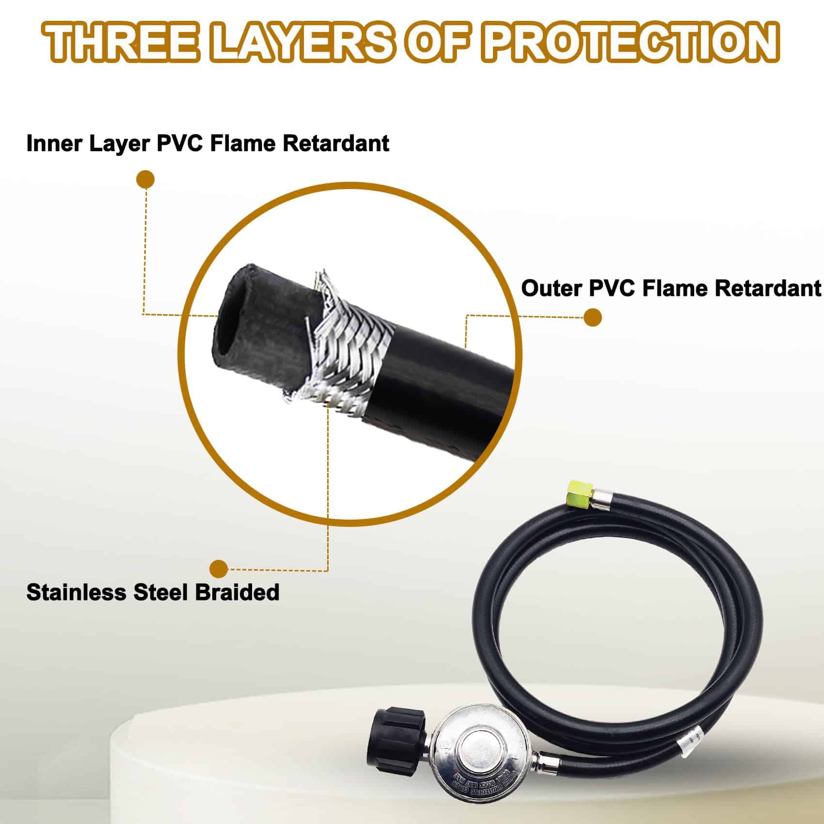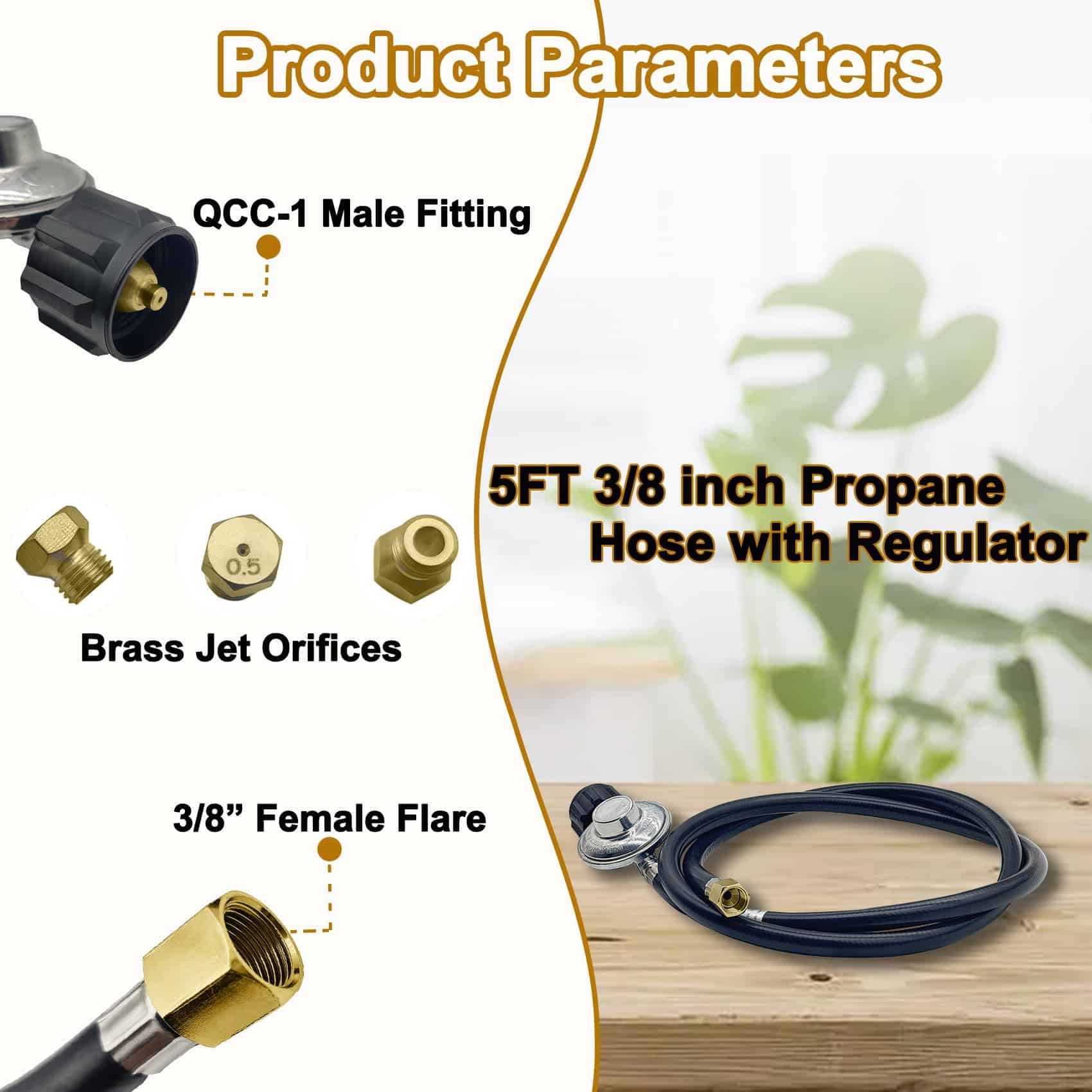 1. Kit de conversión de gas natural a propano: Verifique el número y tamaño de los orificios de su dispositivo antes de comprar para garantizar el tamaño y estabilidad de la llama. Es posible que el orificio de 0.5 mm no sea adecuado para todas las parrillas de propano, ya que el tamaño del BTU preestablecido de fábrica de la parrilla afecta el tamaño apropiado del orificio. El paquete incluye un regulador equipado con una manguera de propano de 5 pies y 6 orificios de inyección de latón.