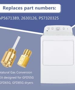 2. Modelos compatibles Kit de conversión de gas natural a propano WE25M87, compatible con General Electric (GE), Apto para las secadoras de las series GFD55GSPN0DG, GFD55GSSN0WW, GFD65GSPN0SN, GFD65GSSN0WW, GHDS830GD0WS, GHDS830GD1WS, GHDS835GD0MC, GHDS835GD1MC, GTD81GSPJ0MC, GTD81GSPJ1MC, GTD81GSSJ0WS, GTD81GSSJ1WS.