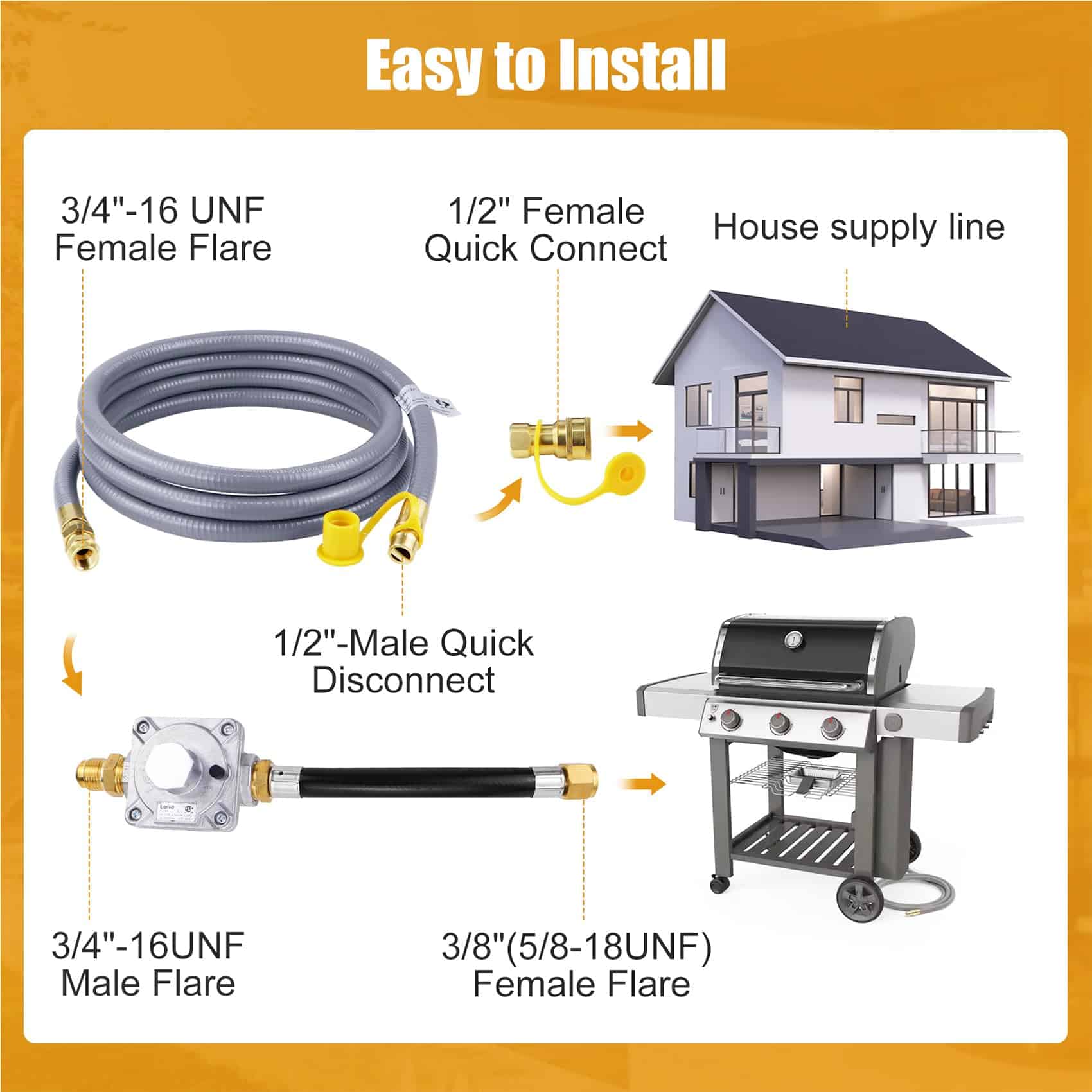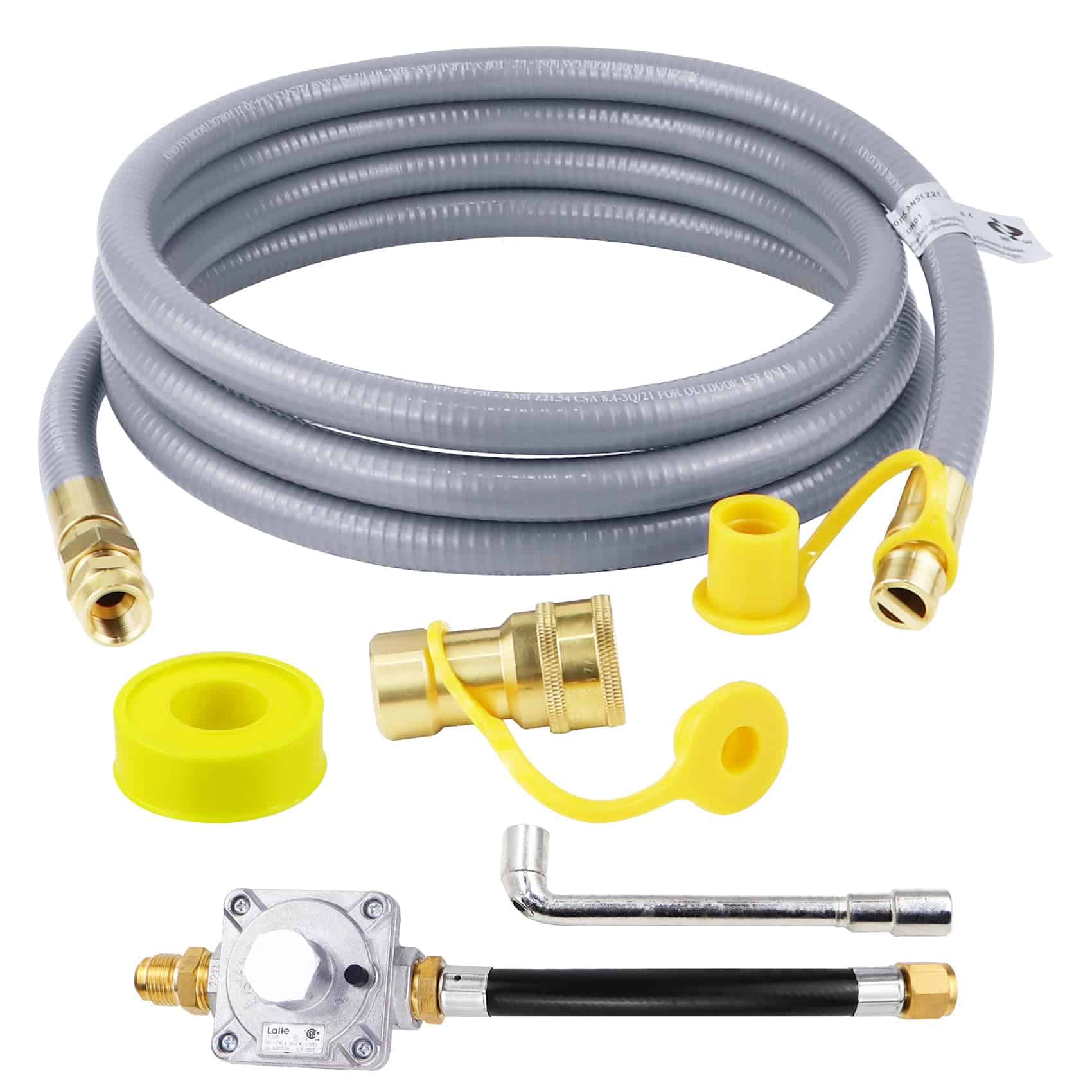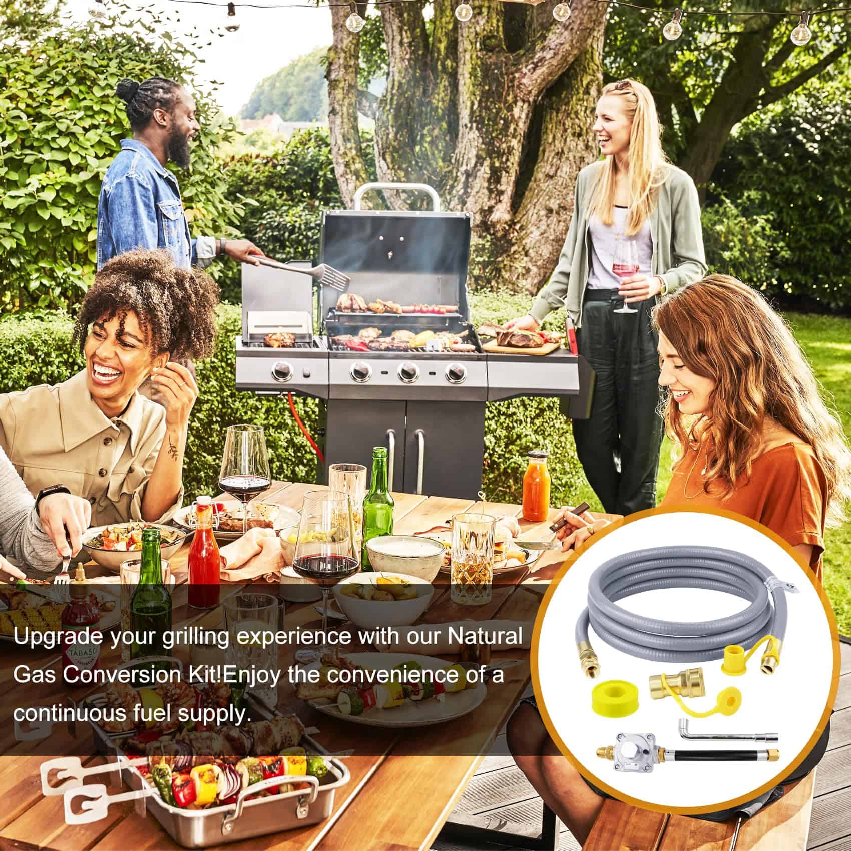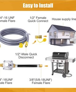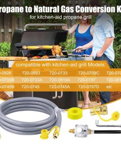 El Kit de conversión de propano a gas natural 710-0003 puede convertir perfectamente una parrilla de propano para que use gas natural. Al utilizar este kit de conversión, ya sea para reuniones familiares, fiestas con amigos o actividades de campamento, el uso de gas natural para asar a la parrilla puede mejorar su experiencia. El kit de conversión de gas propano 710-0003 es el reemplazo perfecto para parrillas Kitchen-aid, como 720-0826, 720-0893, 720-0733, 720-0709C, 720-0709, 720-0709B, 720-0819A, 720-0787, 720-0819B, 720-0745B, 720-0745, 720-0745A, 720-0 787D y muchos más. El kit de conversión de propano a gas natural, fabricado con materiales de alta calidad, es duradero y confiable, garantizando un rendimiento estable a largo plazo sin ningún daño o fuga. Su durabilidad excepcional permite un uso a largo plazo, ahorrando recursos, costos, ofreciendo conveniencia, comodidad, seguridad y confiabilidad en su vida. Este kit de Conversión de Gas Natural de 10FT viene con un Kit de enchufe de desconexión rápida de 1/2″, un accesorio hembra de 1/2″, un adaptador de latón hembra de 3/8″ a macho de 1/2″, la configuración perfecta le permite instalar rápidamente de acuerdo a sus necesidades. El gas natural tiene una presión más baja, por lo que una parrilla de propano que se puede convertir a gas natural requiere un orificio más grande. Sin embargo, este kit no proporciona un orificio. Si tiene una llama pequeña en su parrilla, puede ser porque el orificio es demasiado pequeño. Simplemente reemplace el orificio para solucionar el problema. Si encuentra problemas de instalación o uso después de comprar los productos, puede comunicarse con nosotros a tiempo y resolveremos el problema por usted de inmediato. Si la llama en la parrilla es más pequeña después de la instalación, puede ser debido a que el agujero es demasiado pequeño. Simplemente reemplace el orificio para solucionar el problema.
