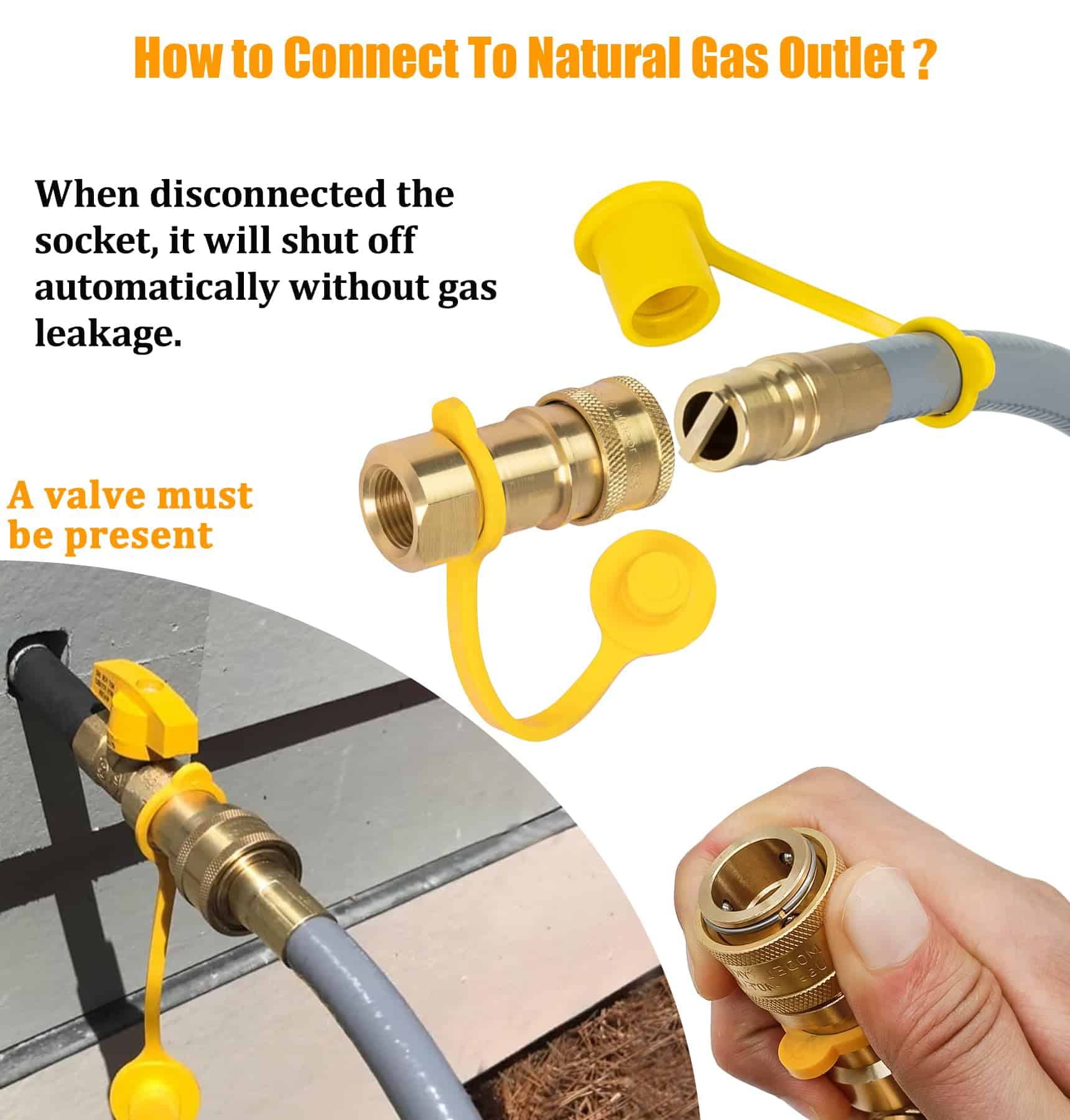 2. KIT COMPLETO – Incluye todos los accesorios para convertir parrillas de propano a gas natural, viene con instrucciones de instalación, boquillas, manguera de gas natural de 10 pies de longitud de 1/2″, conexión rápida, adaptador macho de 1/2″ x hembra de 3/8″, herramienta de eliminación de boquilla, regulador de presión de gas natural con conexiones preinstaladas para una fácil conexión y cinta de teflón.