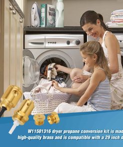 Respuesta rápida. Por favor, indíquenos el número de modelo de su secadora y le proporcionaremos el kit de conversión correcto. Servicio postventa incluido. El kit de conversión W11581316 es apto para la mayoría de las secadoras de 29″. Compatible con: Maytag, Kenmore, Amana, Estate, Sears, Kitchen-Aid, Roper, Whirlpool Dryers. El kit de conversión incluye: (1) Orificio, Quemador-Propano No. 54 (1) Orificio, Quemador-Butano No. 55, entre otros accesorios. Funcionalidad: kit de conversión aprobado para convertir su secadora de gas de natural a propano LP o gas butano. Convierte quemadores de gas de 22,000 BTU/hr de gas natural a gas propano licuado. IMPORTANTE: El número de kit mostrado en la etiqueta de datos del quemador puede no coincidir con el kit recibido debido a la consolidación del kit.