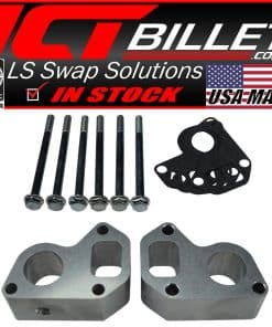 Los separadores de bomba de agua del motor de la serie LS, de 1.5 pulgadas de grosor, se utilizan para retener accesorios de estilo camión (dirección asistida, alternador, etc.) mientras se utiliza una bomba de agua LS3 de fábrica. Fabricados en EE. UU. con aluminio billet de grado aeroespacial. Acabado natural de aluminio, incluye pernos, 1 tapón de puerto de vapor y sellos de junta tórica reutilizables. Incluye provisión de puerto de vapor en 1 de los separadores. Guía de espaciado de correa del motor de la serie LS: Los motores Corvette, G8 y CTSV tienen la configuración de correa más ajustada a bloque (aparte de los vehículos de tracción delantera con LS4). El espaciado de la correa del Camaro LS1 está un 3/4″ más afuera. El espaciado de correa de Camión y Camaro 2010u está 3/4″ más afuera que el Camaro LS1 (1.5″ del Corvette).