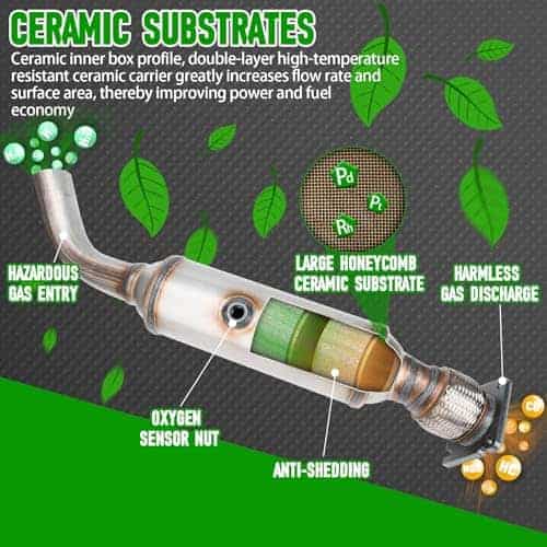 2. Alta calidad: El cuerpo de acero inoxidable de tuberías de aluminio de alta calidad no se oxida fácilmente, asegurando una excelente capacidad de almacenamiento de oxígeno y una larga vida útil. El portador cerámico resistente a altas temperaturas de doble capa aumenta considerablemente la velocidad de flujo y la superficie, mejorando así la potencia y la economía de combustible. Reemplace con un nuevo convertidor catalítico para proporcionarle un excelente rendimiento de aire limpio, devolver la tranquilidad al vehículo y restaurar una buena experiencia de conducción para usted.