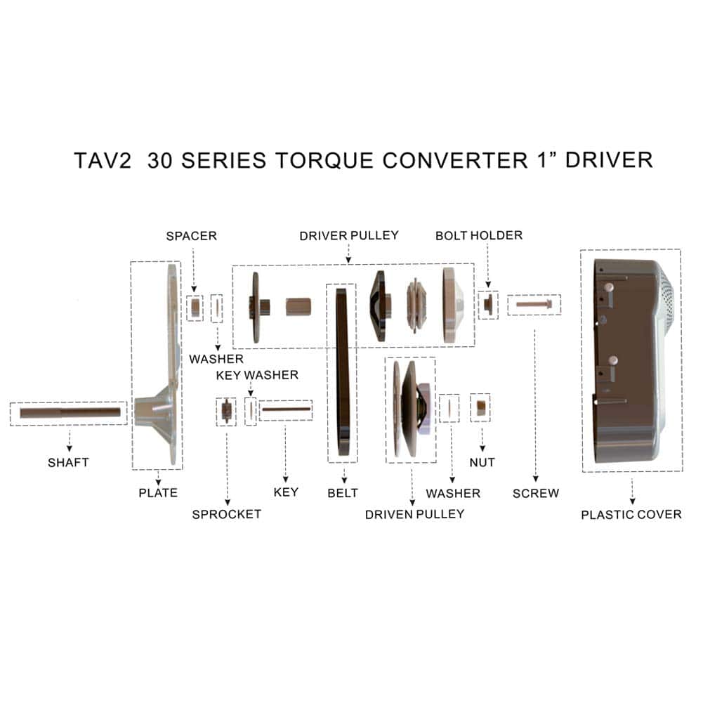 El kit de convertidor de par de la serie Comet 30 se puede montar en la mayoría de motores con un eje horizontal, como Briggs, Clinton, Honda y clones, Kohler, Lifan, Robin y motores Tecumseh. La unidad motriz tiene un diámetro de 1″ (24.5mm), mientras que la unidad impulsora tiene un diámetro total de 6″ (polea de impulsión de 5/8″) para un rendimiento óptimo.
