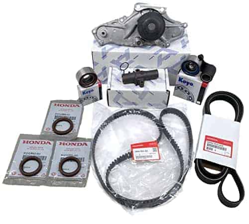 Incluye las siguientes piezas nuevas: Correa de Distribución GENUINA HONDA / 14400-RCA-A01 Sellos del árbol de levas frontal x 2 GENUINA HONDA / 91213-RP6-A01 Sello del cigüeñal frontal GENUINA HONDA / 91212-R70-A02 Tensor Hidráulico AISIN OE / 14520-RCA-A01 Rodillo/ Polea del rodillo de transmisión Koyo OE / 14550-RCA-A01 Rodillo/ Polea del tensor Koyo OE / 14510-RCA-A01 Bomba de Agua y Empaque AISIN oem / 19200-RDV-J01 Correa de Transmisión Serpentina GENUINA HONDA