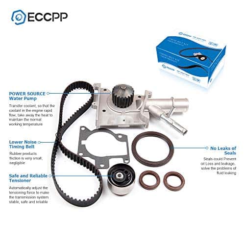 3. El Kit de Correa de Distribución Incluye: 1 Bomba de Agua con Junta; 1 Correa de Distribución; 1 Tensor de la Correa de Distribución; 1 Sello del Cigüeñal Delantero; 2 Sellos del Árbol de Levas.