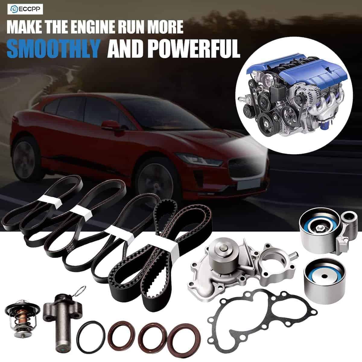 Este kit de correa de distribución con bomba de agua ECCPP es compatible con una variedad de modelos Toyota, especialmente diseñado para los vehículos 4Runner, T100, Tacoma y Tundra. Incluye una completa lista de componentes de calidad premium para garantizar un rendimiento óptimo de su motor. Reemplaza los números OE: TBK271, WP2034, T62021, 13568-YZZ03, 90311-40022, entre otros. Con menos ruido y resistencia en la transmisión, este kit asegura una operación más suave y eficiente de su motor, reduciendo al mismo tiempo el desgaste de su automóvil. Antes de realizar su pedido, asegúrese de verificar el número de parte y la compatibilidad de su vehículo. Este kit de correa de distribución es una inversión a largo plazo para el rendimiento y la durabilidad de su vehículo. ¡Compre con confianza y mantenga su motor en óptimo estado con ECCPP!