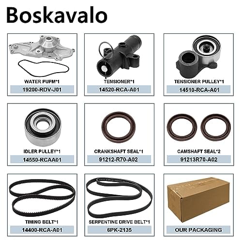 El kit de correa de distribución del motor Boskavalo con bomba de agua está diseñado para ajustarse a una amplia gama de modelos de vehículos Honda, Acura, y Saturn. Cada correa de distribución y bomba de agua se fabrica con las mismas especificaciones que los actuadores de fábrica, garantizando rendimiento y durabilidad estándar. Controla los calibradores de freno, detiene el vehículo de manera efectiva y segura, y evita que el vehículo se mueva. Se recomienda la instalación por un mecánico de automóviles profesional para garantizar la seguridad y el uso normal del producto. Asegúrate de verificar la descripción y la tabla de compatibilidad antes de comprar. Ofrecemos una garantía de un año para todas nuestras correas de distribución y bombas de agua.