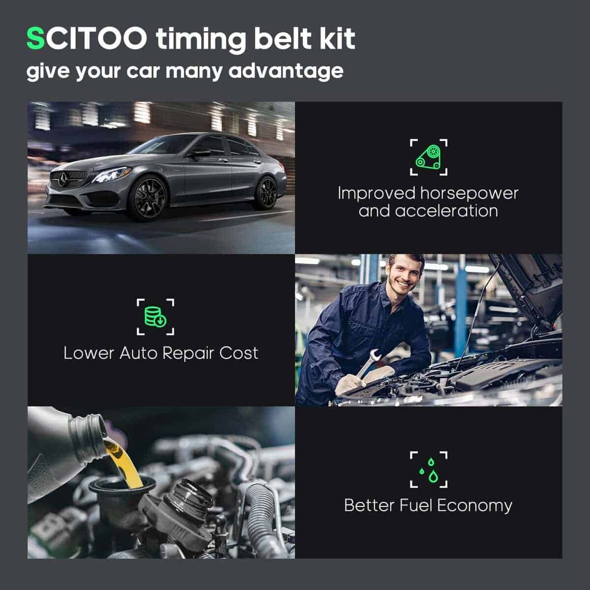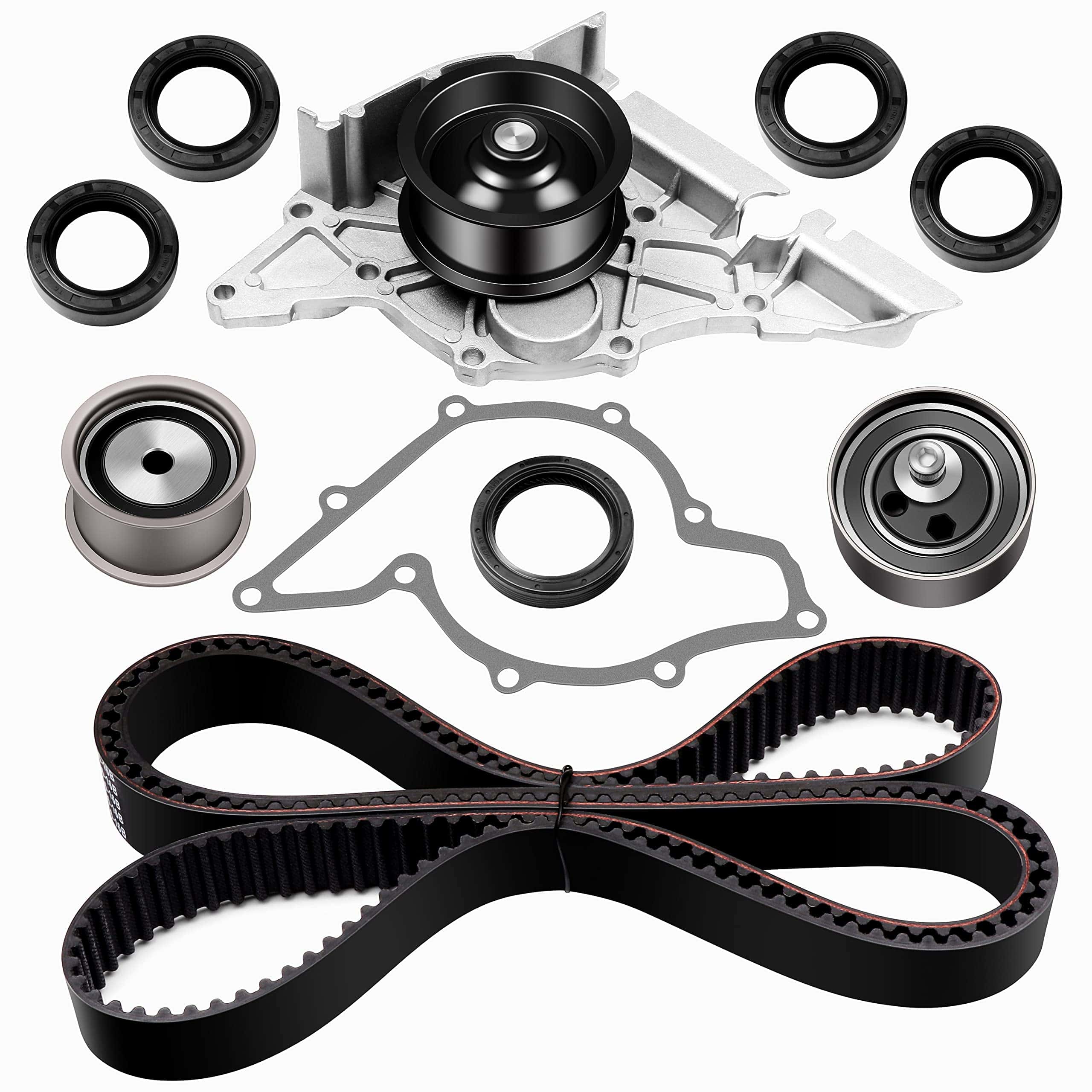Kit de correa de distribución del motor SCITOO compatible con TCKWP297 WP297K1A 078121004J TBK297 WP180-2120 TB297K1 078-109-119J 078-109-244H 078-109-243S para Audi A4 A4 Quattro A6 A6 Quattro para Volkswagen Passat. Este kit está diseñado para proporcionar un reemplazo de calidad y un rendimiento óptimo para su vehículo. Fabricado con materiales de alta calidad y diseñado para cumplir con las especificaciones OEM, este kit de correa de distribución y bomba de agua es una opción ideal para el mantenimiento de su automóvil. Mantenga su motor en óptimas condiciones y asegúrese de seguir las recomendaciones de instalación y mantenimiento para garantizar un rendimiento óptimo de su vehículo.