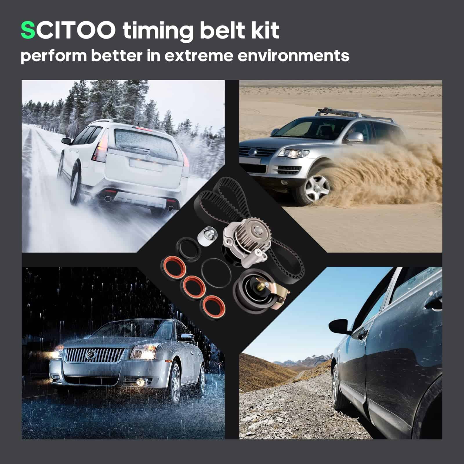 5. Nota: SCITOO Auto suministra correas de tiempo para la mayoría de autos, SUVs, camiones y remolques. Por favor, seleccione su vehículo (año/marca/modelo/acabado) en la esquina superior izquierda de la página para confirmar la compatibilidad o consulte la información del vehículo en la descripción.