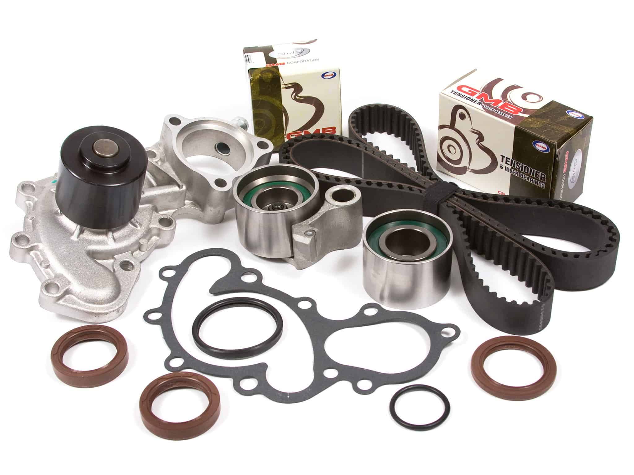 Este kit incluye: 1 Correa de Tiempo (191 dientes), 1 Rodamiento Tensor GMB (conjunto de rodamientos), 1 Rodamiento Loca GMB, 2 Sellos de Levas (38 x 50 x 10.5), 1 Sello del Cigüeñal Delantero (40 x 55 x 6), 1 Tensor Hidráulico / Ajustador de Tensor – no incluido, 1 Bomba de Agua (con tubo de salida). Números de pieza: TBK271-GMB, WP2034, 2 38 x 50 x 10.5, 1 40 x 55 x 6. Compatibilidad con Vehículos: 1996-2002 TOYOTA 4RUNNER 3.4L 3378CC V6 DOHC, (24 VALVE), CODE «5VZFE», 1995-1998 TOYOTA T100 3.4L 3378CC V6 DOHC, (24 VALVE), CODE «5VZFE», 1995-2004 TOYOTA TACOMA 3.4L 3378CC V6 DOHC, (24 VALVE), CODE «5VZFE», 2000-2004 TOYOTA TUNDRA 3.4L 3378CC V6 DOHC, (24 VALVE), CODE «5VZFE»