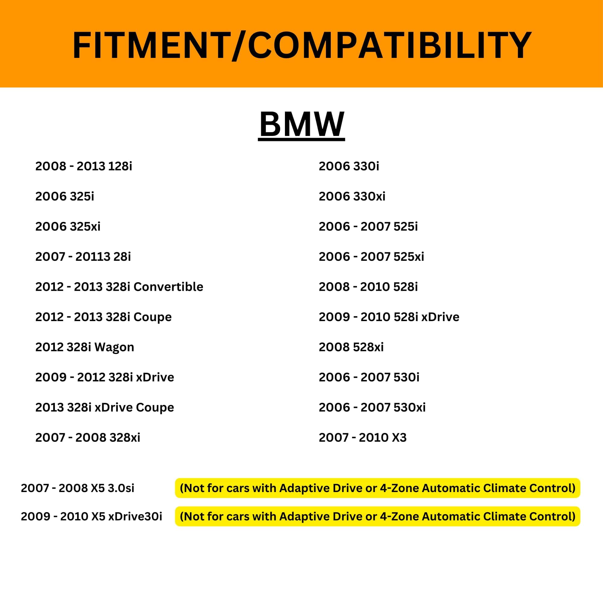 2007 – 2008 X5 3.0si (No apto para vehículos con Drive Adaptativo o Control Climático Automático de 4 Zonas)