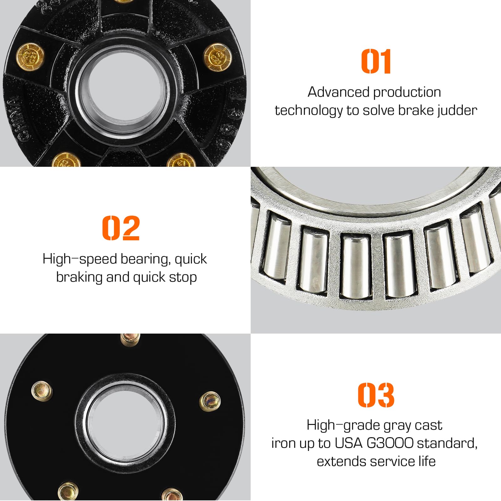 – Alta precisión, sin excentricidad axial, uso de rodamientos de alta velocidad, grasa de litio de alta temperatura; Cumple con el estándar G3000 en los EE. UU