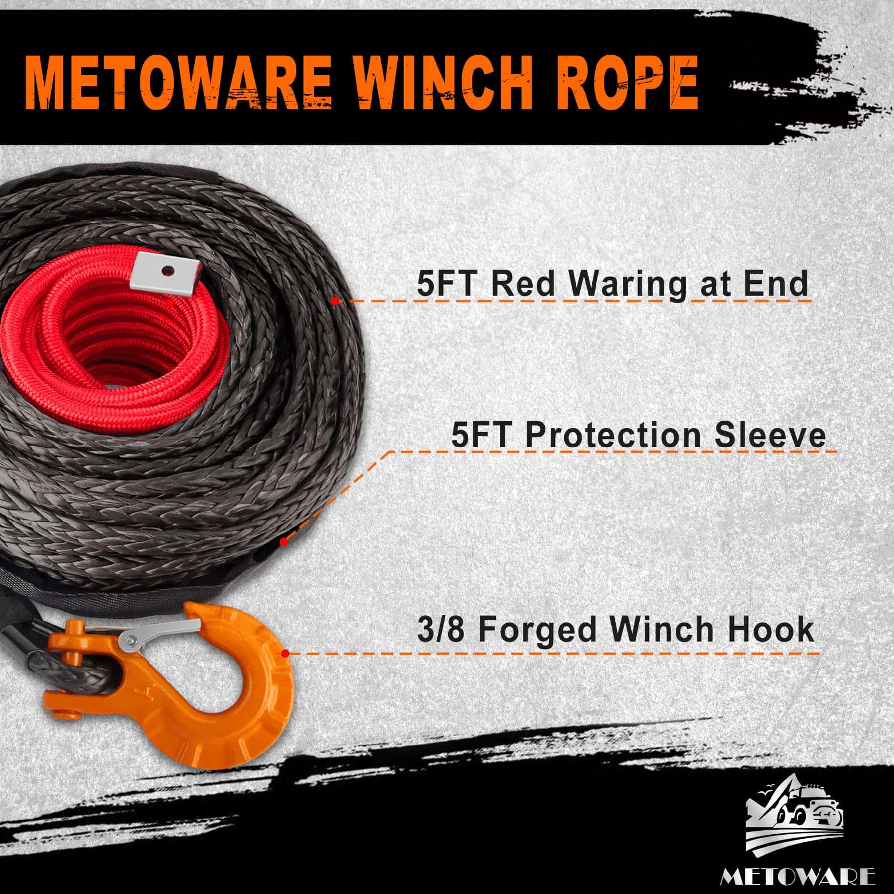 4. FÁCIL DE LIMPIAR: Fácil de manejar y empalmar. La Cuerda de Malacate METOWARE evita el sobrecalentamiento, deslizamientos, superficies ásperas o afiladas y se puede enganchar fácilmente con rodillos. Esta cuerda de malacate sintética no se enredará como el cable de acero.