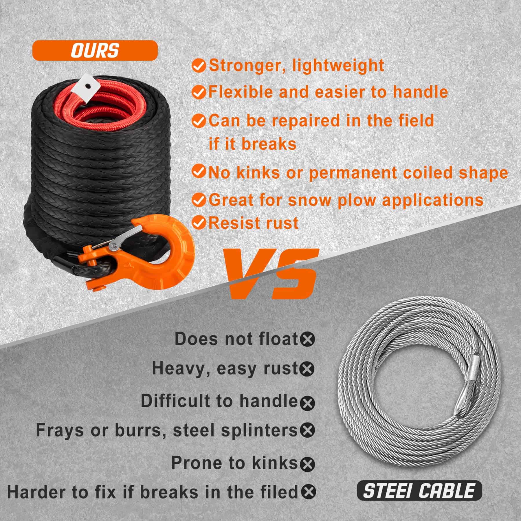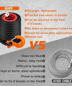3. PERFECTO UPGRADE: Esta cuerda de malacate es más fuerte, más ligera y más segura que los cables de acero tradicionales y fácil de transportar. Es adecuada para la mayoría de los malacates como ATV, UTV, etc. Puede funcionar fácil y perfectamente en la mayoría de los malacates ATV y puede reemplazar por completo su cable de acero tradicional.