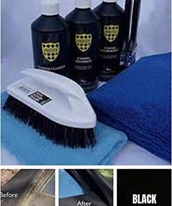 Kit de cuidado completo diseñado para techos convertibles. Este kit contiene un limpiador de lienzo para eliminar la suciedad y manchas, un restaurador para mantener el color negro intenso, un impermeabilizante para proteger contra la humedad, una toalla de microfibra gigante para un acabado suave, cepillos para limpiar las áreas difíciles y paños de microfibra adicionales para un cuidado adicional. Mantenga su techo convertible en óptimas condiciones con este kit de PROTEX.