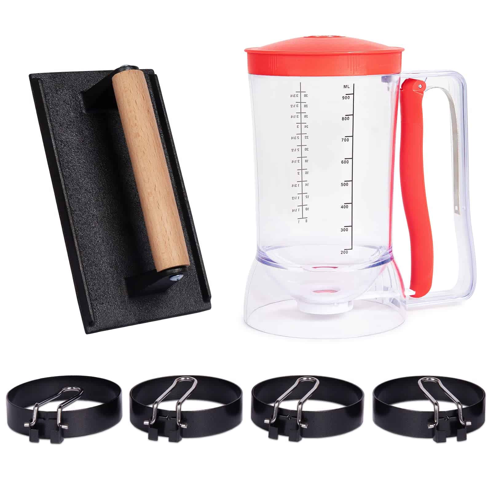 El Kit de Desayuno de 6 Piezas SHINESTAR para Blackstone es el juego de accesorios perfecto para asegurar que su desayuno a la parrilla sea fácil y delicioso. Este conjunto completo incluye un dispensador de masa para panqueques, un prensador de tocino y anillos de huevo para satisfacer todas sus necesidades culinarias matutinas. El dispensador de masa para panqueques cuenta con una pantalla de medición para garantizar que sus panqueques, waffles y muffins sean del tamaño perfecto en todo momento. El prensador de tocino está hecho de hierro fundido resistente para un calentamiento uniforme y es ideal para asar sándwiches, hamburguesas y más. Los anillos de huevo cuentan con un diseño de mango plegable para un fácil almacenamiento y se pueden calentar uniformemente, lo que los convierte en el compañero perfecto para el dispensador de masa para panqueques. Con este conjunto, podrá freír 4 huevos a la vez y ahorrar tiempo en la cocina. Para mantener sus accesorios de desayuno en la parrilla como nuevos, se recomienda lavarlos a mano. Disfrute de un desayuno perfecto con el Kit de Desayuno de 6 Piezas SHINESTAR para Blackstone.